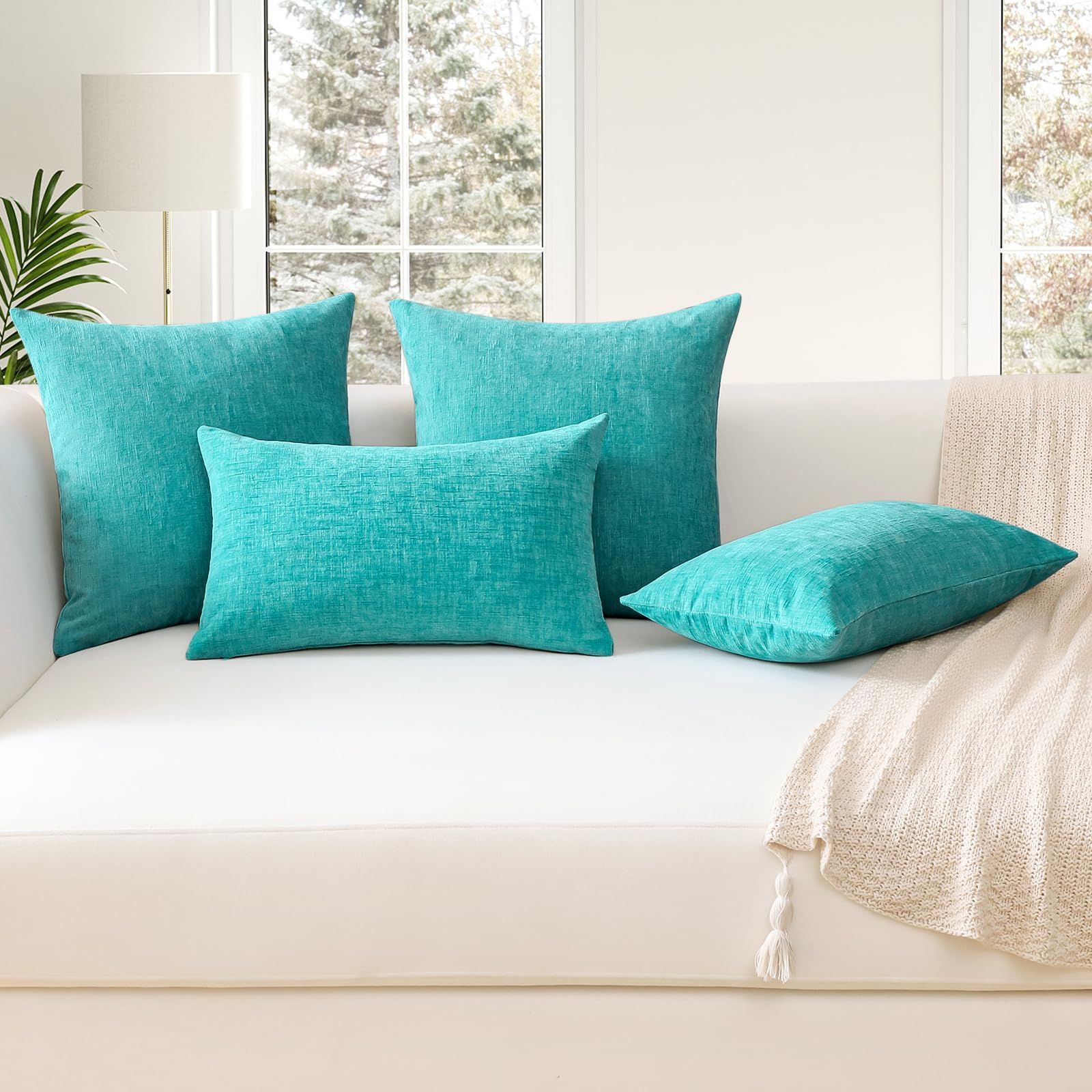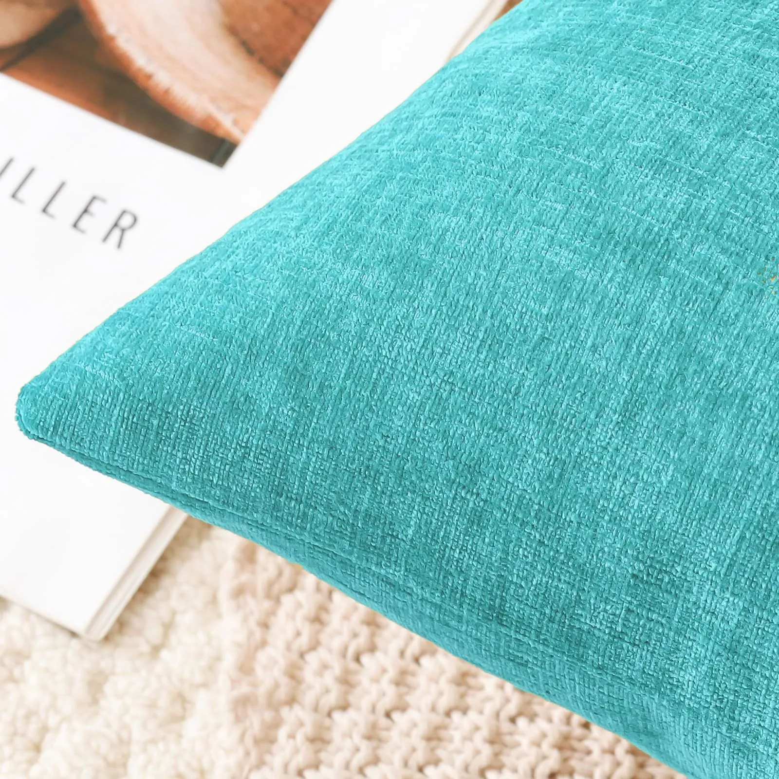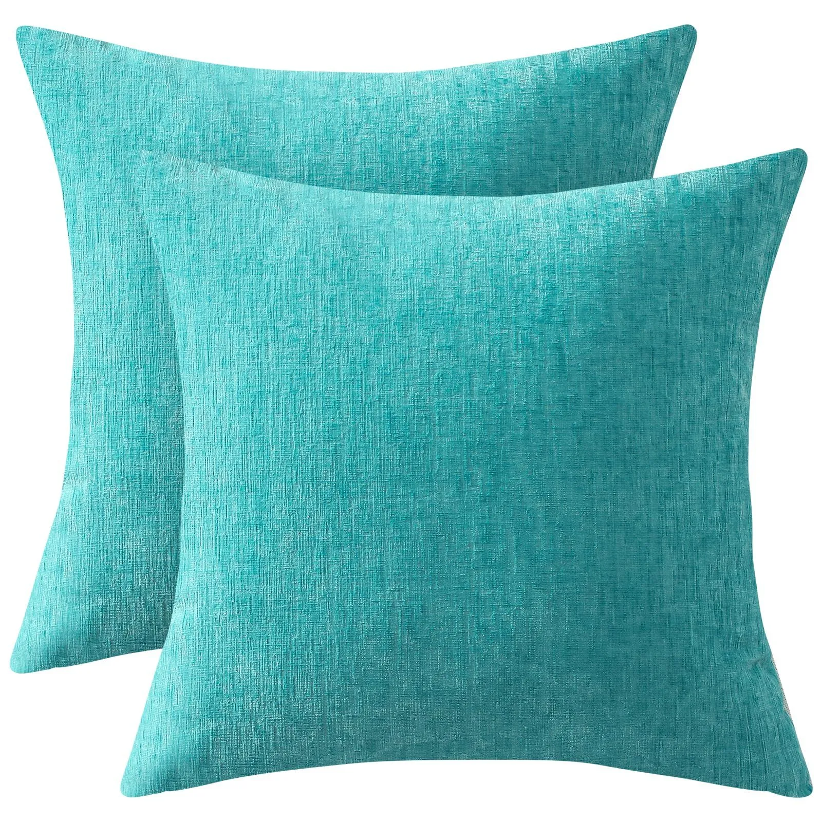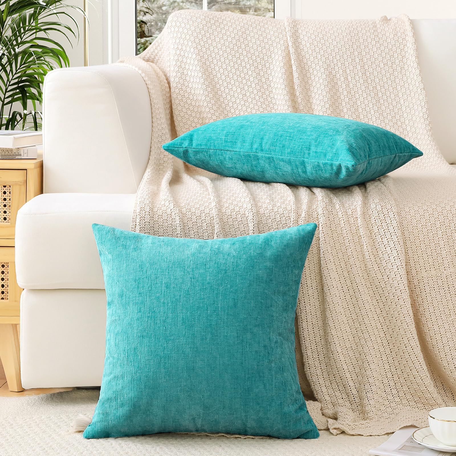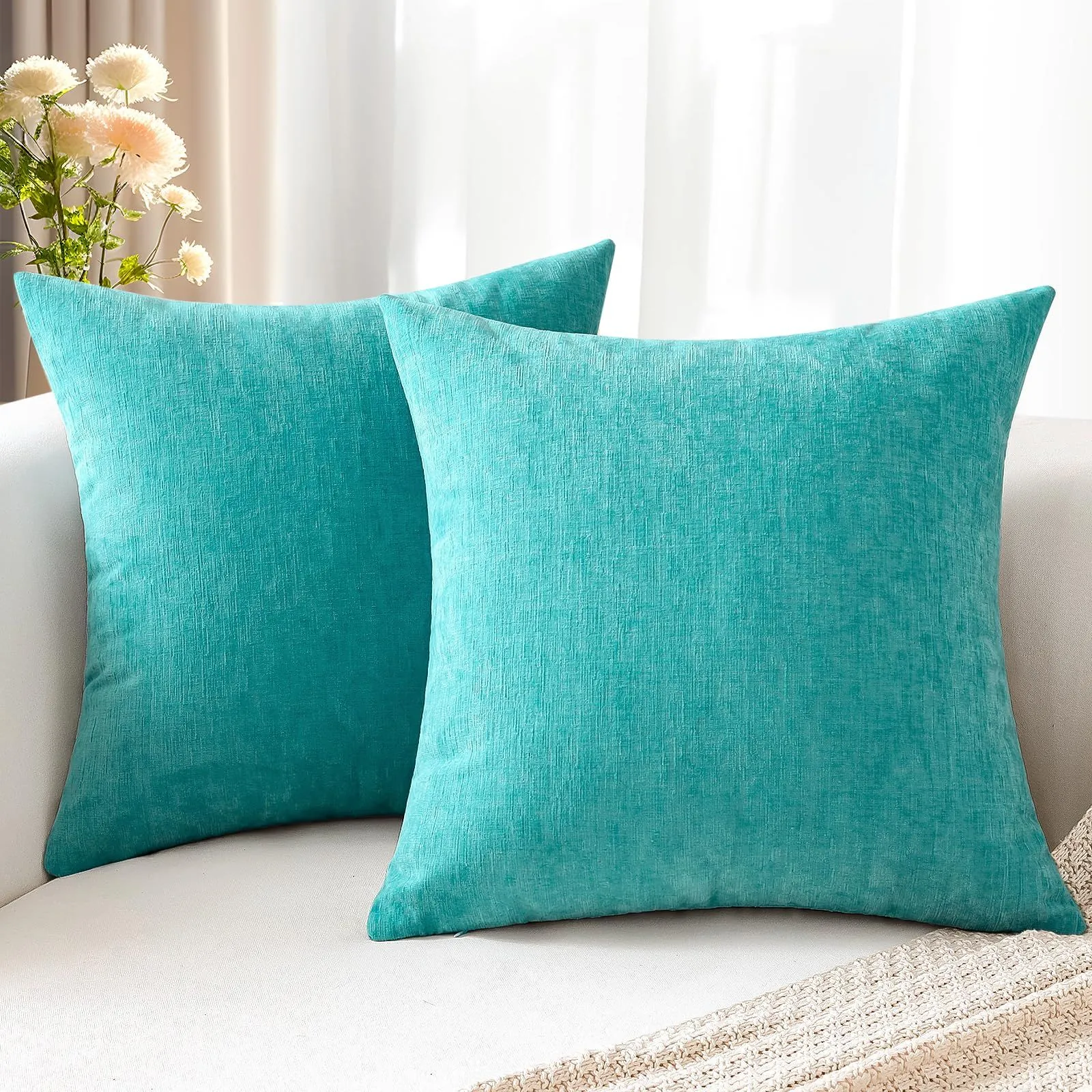 Otostar クッションカバー 北欧 2枚セット おしゃれ 可愛い 無地 シェニール 両面 モダン ファスナー インテリア 装飾用ピローカバー (45x45cm,ターコイズ)