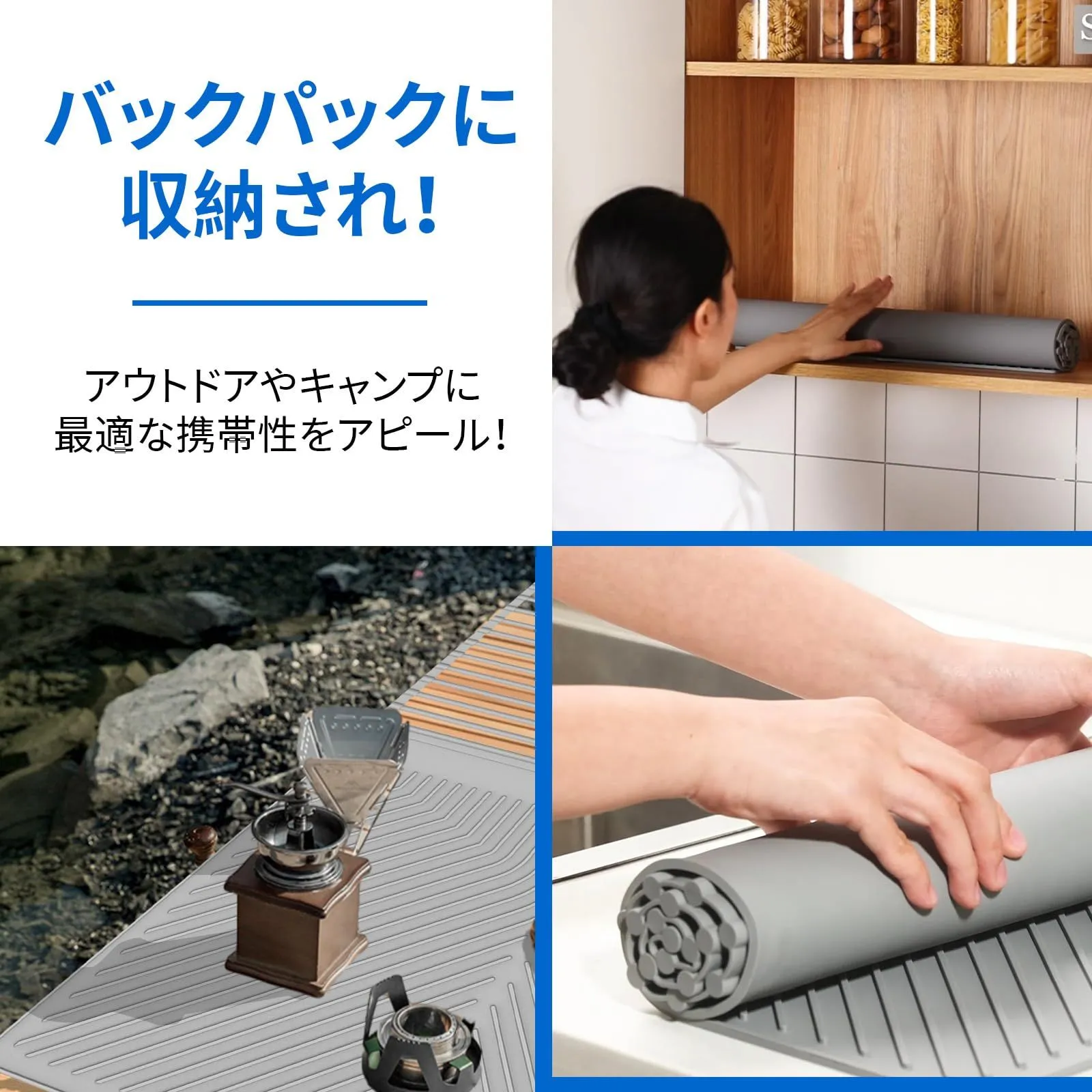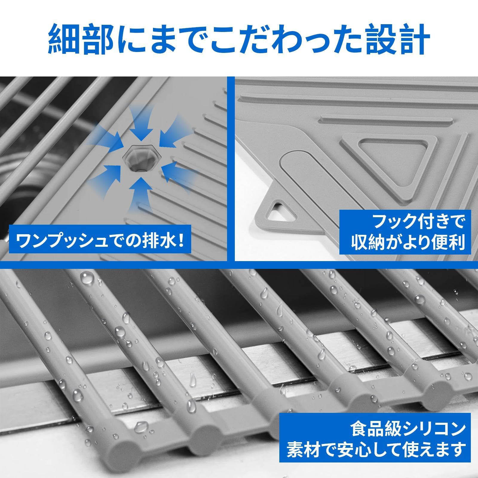 【お手入れ簡単、収納も簡単】シリコン素材で、直接水で洗い流すだけできれいになります。引っ掛け穴が付いており、吊るして乾かすことができ、錆びにくく、カビが生えにくいです。折畳み水切りセットは、使用しないときに巻いて収納できるため、場所を取らずに保管できます。 - 最後までご確認頂き誠にありがとうございました。 上記をご確認頂き、ご購入いただけましたら幸いです。 何かご不明な点がございましたらお気軽にメッセージからお問い合わせ下さい。