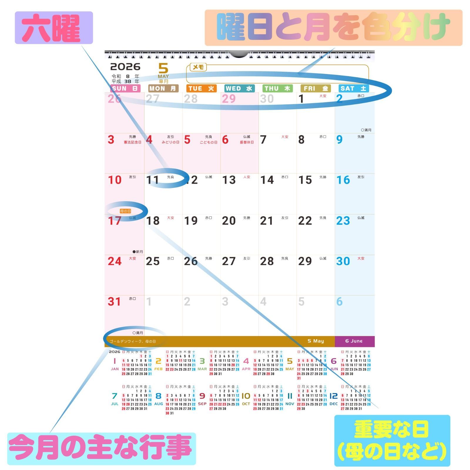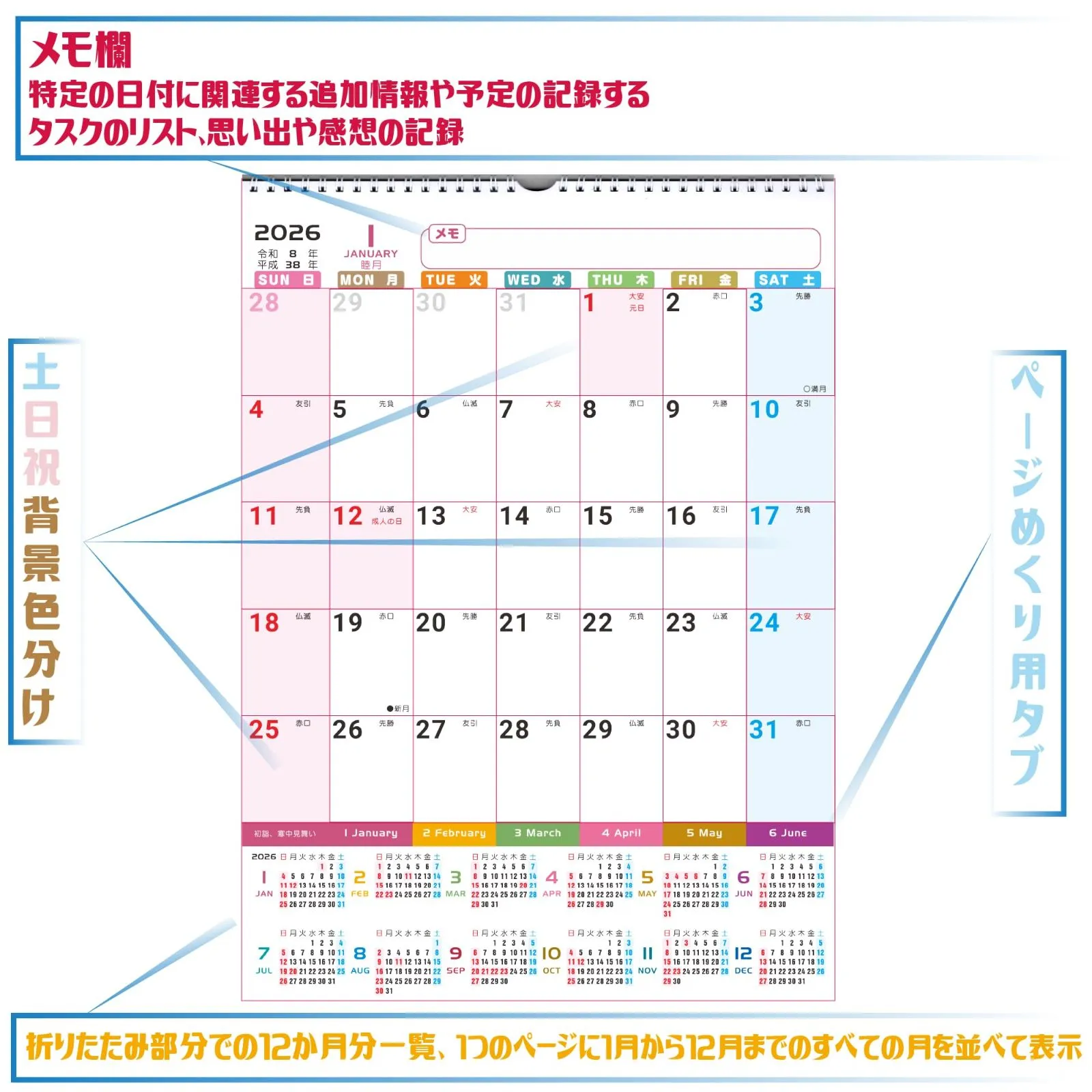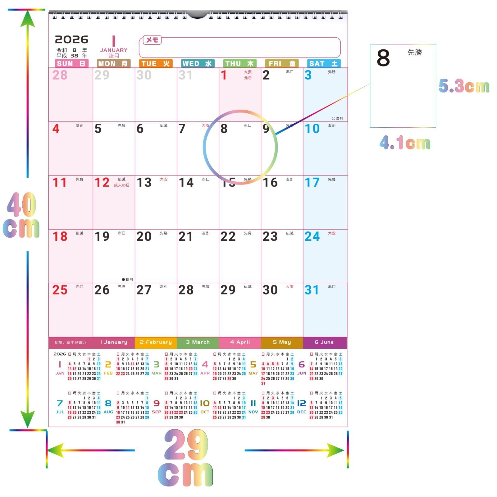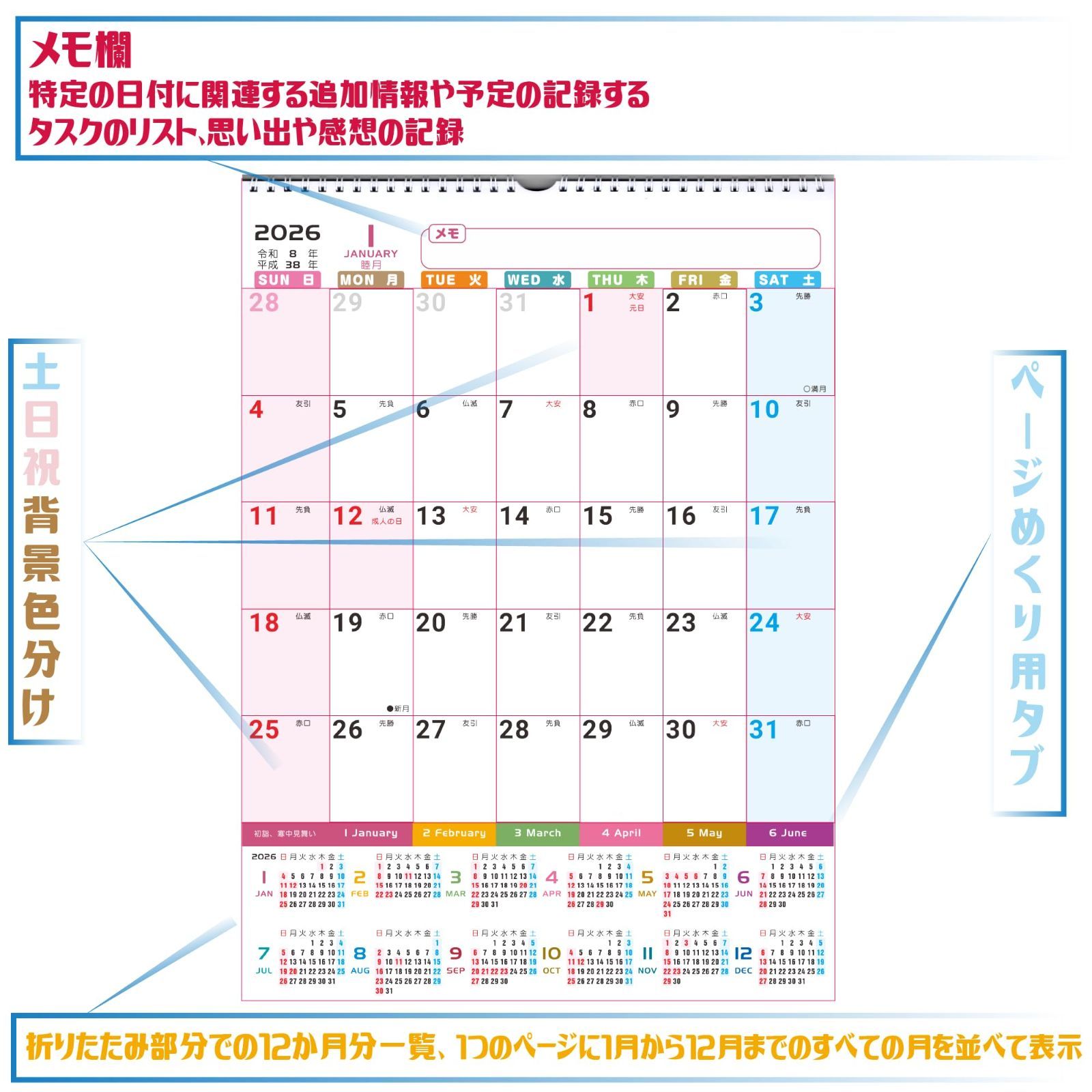 【人気商品】壁掛カレンダー 1年分ひと目 2026年 実用性アップ シュプレーシング 梱包サイズ縦32cm横29cm 2025年12月始まり】Supracing 使用サイズ縦40.5cm横29cm 【2026年度