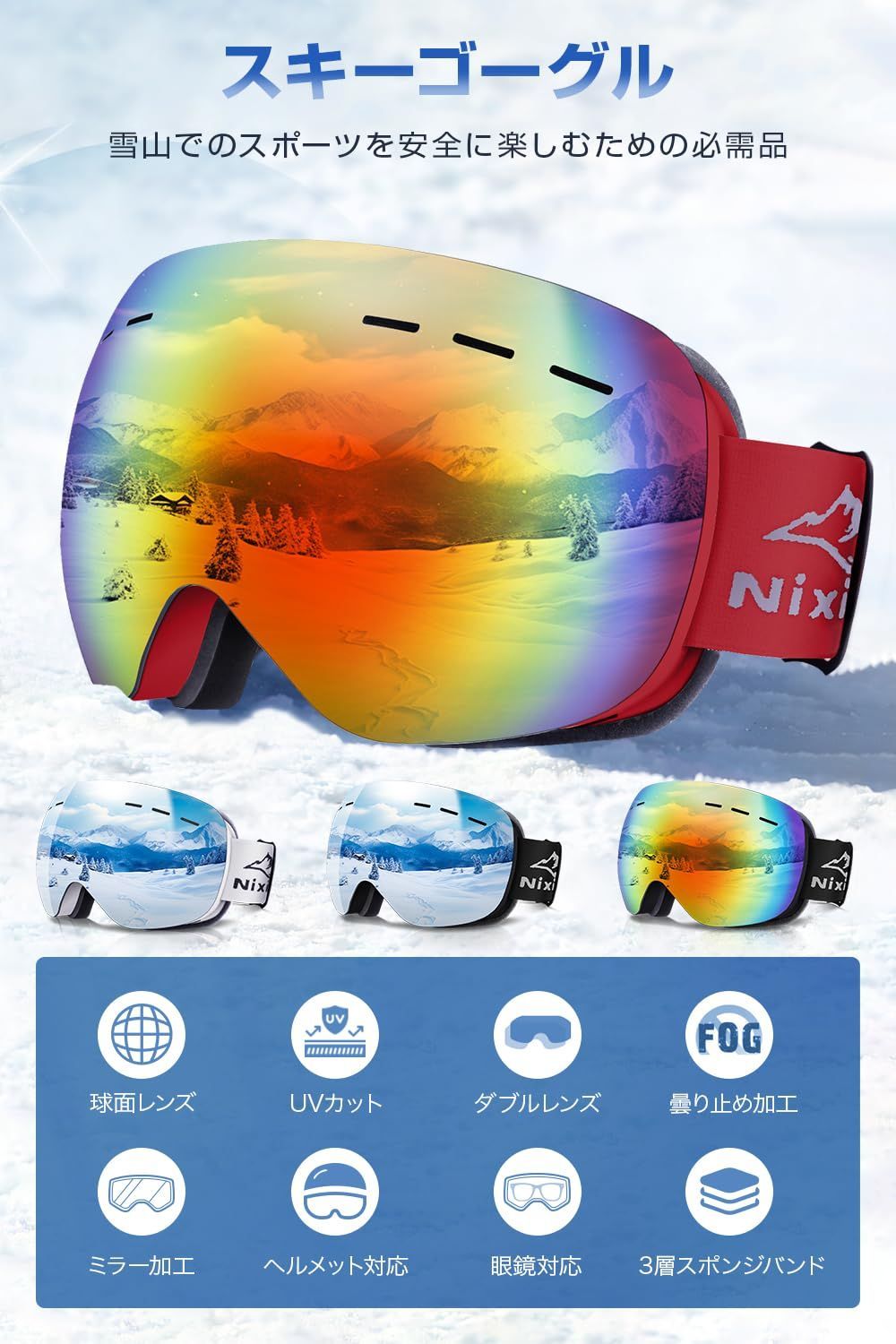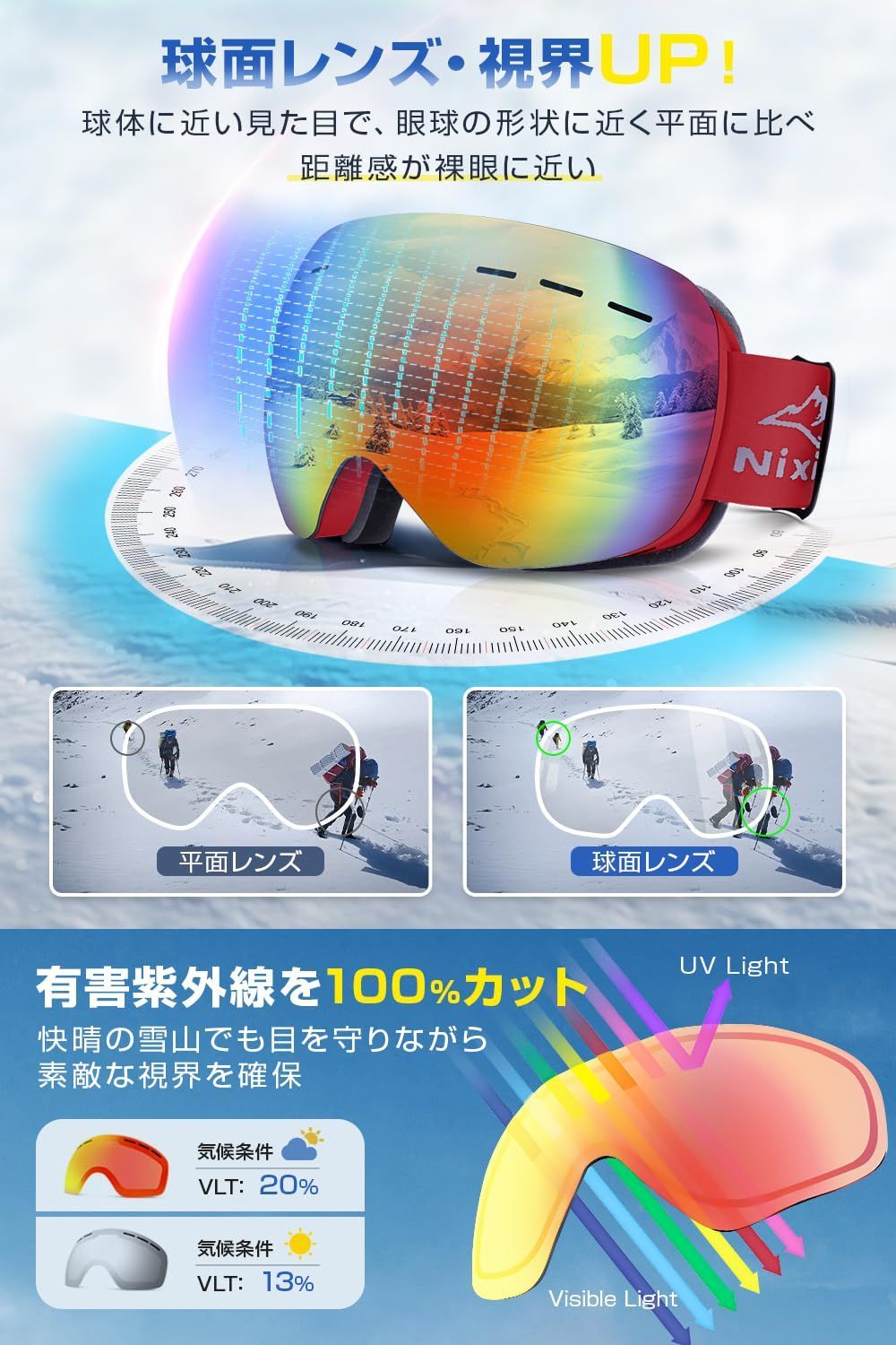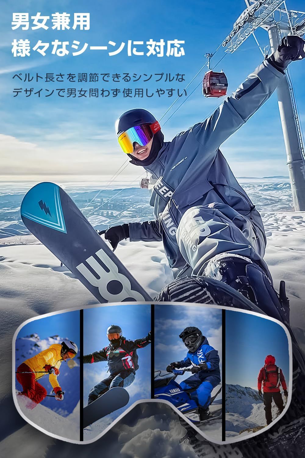 【2025新登場&180°広視野球面レンズ】 スノーゴーグル 曇り止め 耐衝撃 ダブルレンズ 防塵防風防雪 UV100%カット 紫外線防止 スキーゴーグル レディース メンズ ヘルメット対応 滑り止めベルト スノボートゴーグル スノボ ゴーグル スポーツ用ゴーグル 軽量 防放射 冬山登山/スノボ/サバゲー/バイク/スキー運動 男女兼用