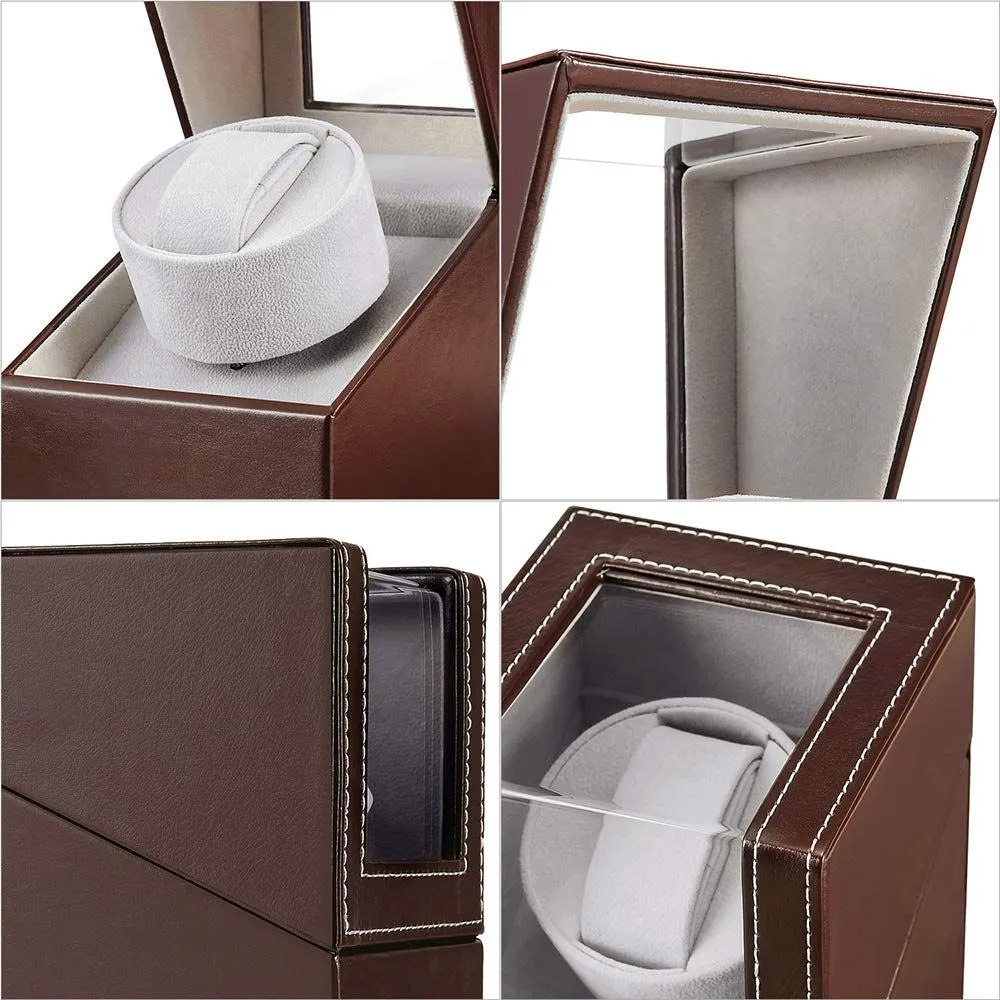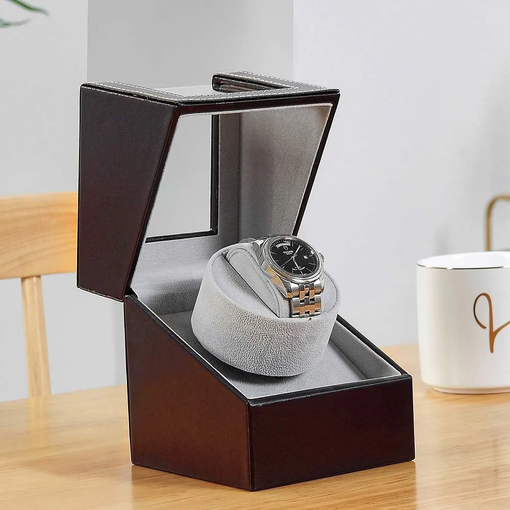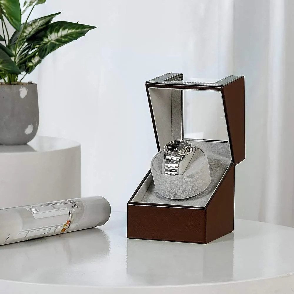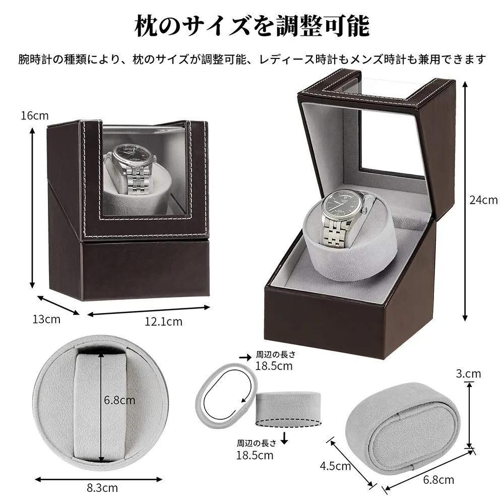 ワインディングマシーン ウォッチワインダー ワインダー 腕時計 自動巻きワインディングマシーン 日本製 マブチモーター自動巻き上げ機 腕時計収納ケース 1本巻き (ブラウン レザー-125C)