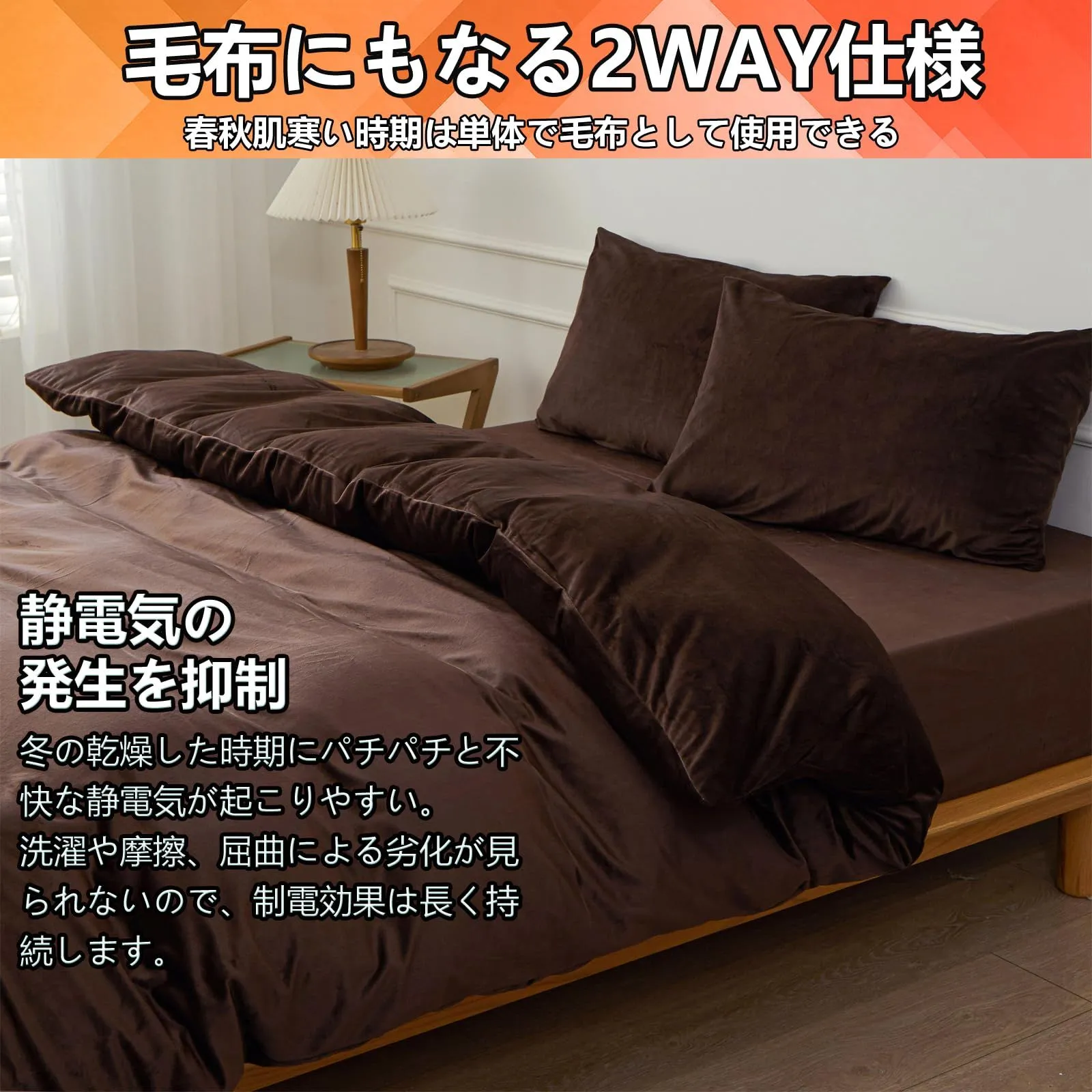 掛け布団カバー シングル あったか 秋冬用 極細マイクロファイバー 吸湿発熱 速乾 静電気防止 かけ布団カバー 毛布にもなる2WAY仕様 布団掛けカバー 掛けふとんカバー 静電気防止 抗菌防臭 8ヶ所紐付き (掛け布団カバーシングル:150x210cm, ブラウン)