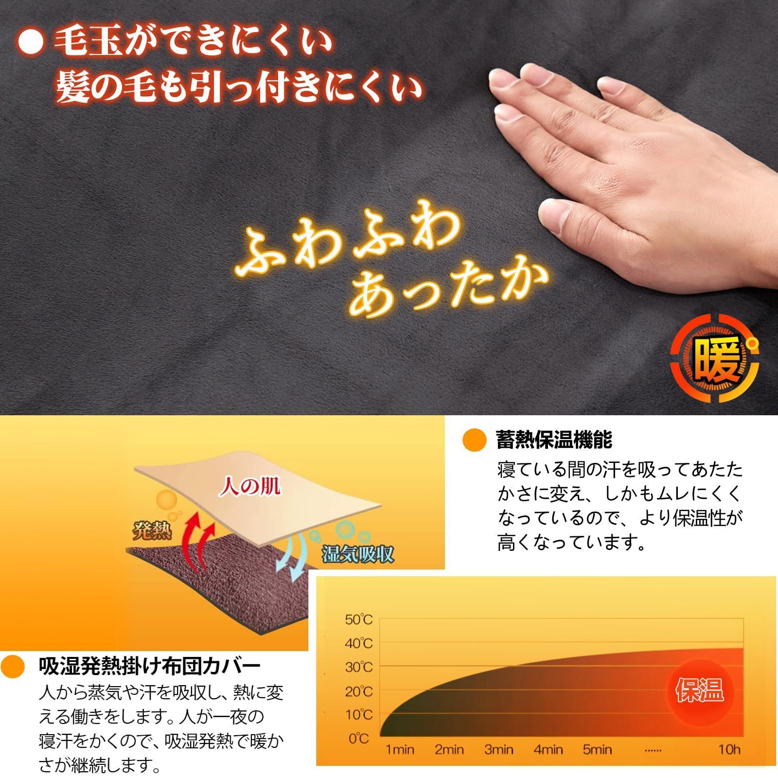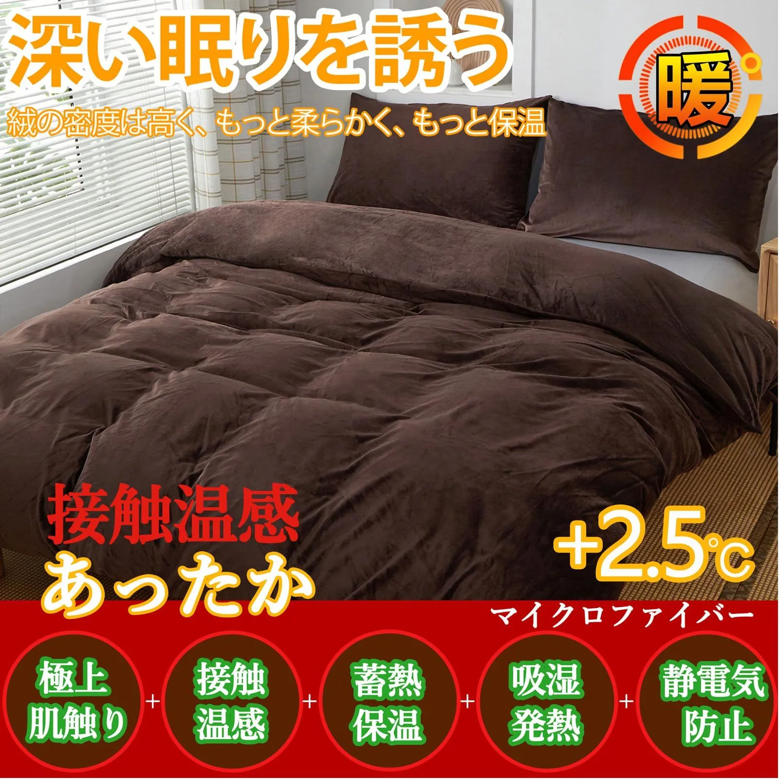 【あったか接触温感・蓄熱保温機能】肌ざわりのひみつ極細マイクロファイバーを高密度で編み上げた生地のカバーは布団に入った瞬間ヒャッと感がなく、入った瞬間からすぐに暖かさを感じる事できます。ほどよく暖かい空気を含んでくれますので、保温性が高くなっています。ぬくぬくの暖かさで、寒い時期には欠かせないアイテムです。
