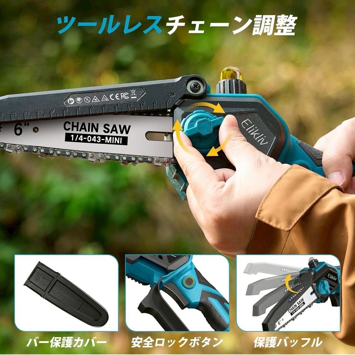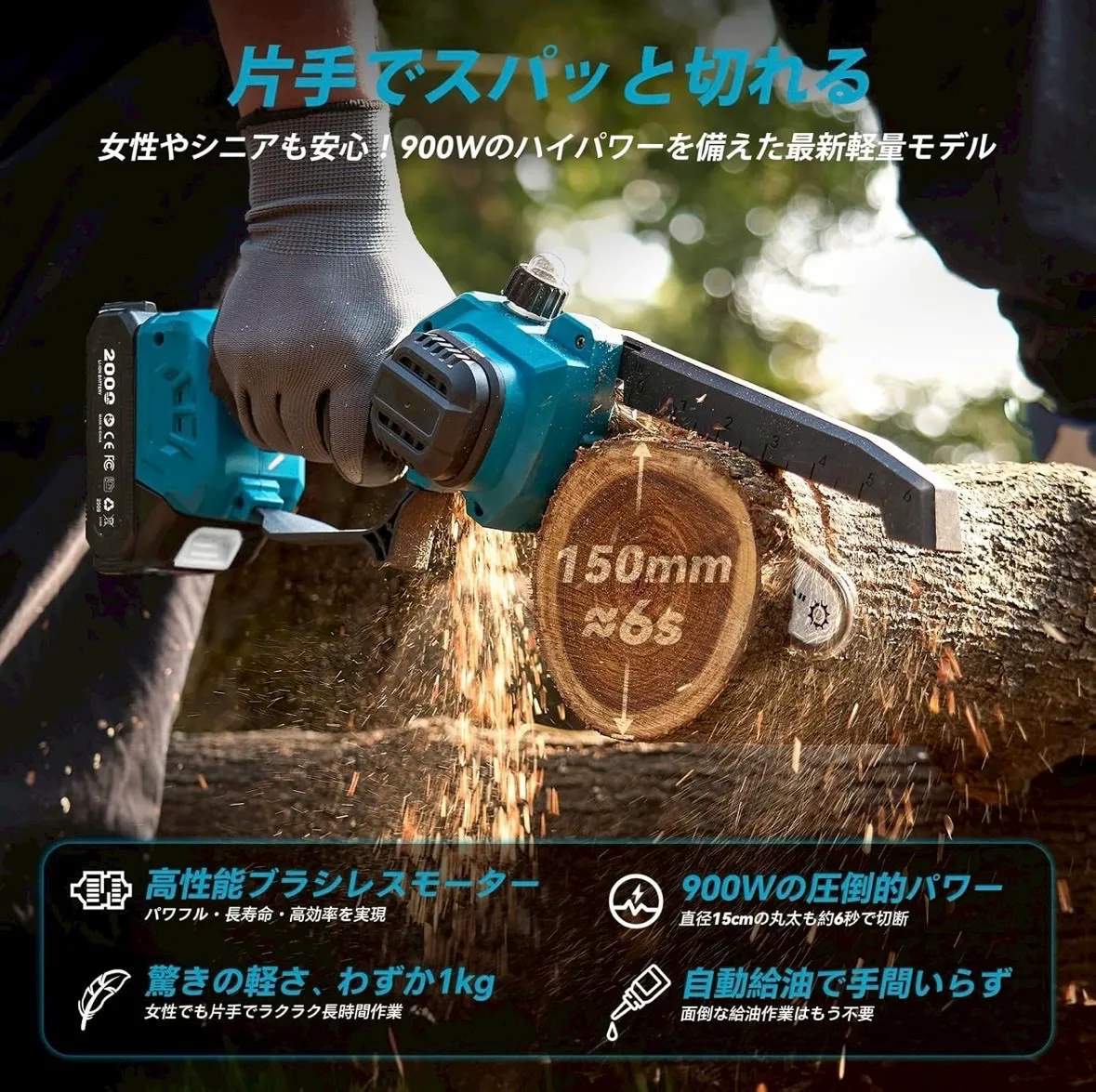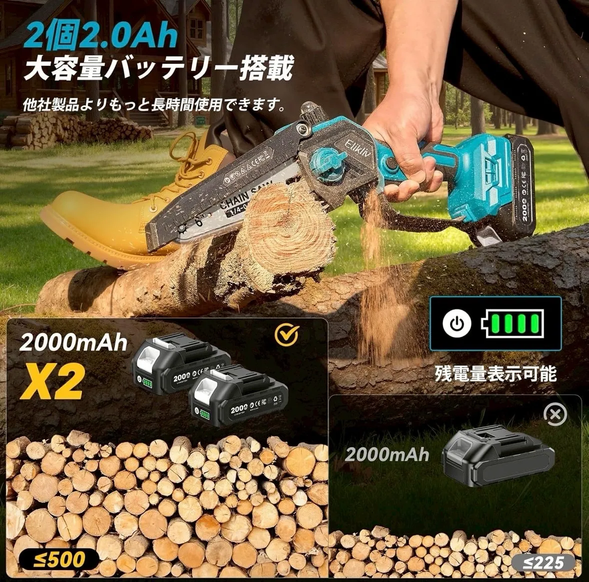 【ブラシレスモーター搭載チェーンソー】 ・2025年最新モデル ・工具不要でチェーン調整可能 ・バッテリー残量表示付きで安心 ・高耐久(寿命約320%UP)&高出力(約80%UP) ・省エネ設計(消費電力約50%削減)