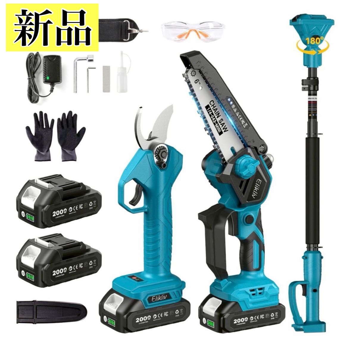 高枝切り電動チェーンソー 1.5m伸縮 軽量1.2kg 充電式 剪定ばさみセット ブラシレス バッテリー2個付き コードレス 延長