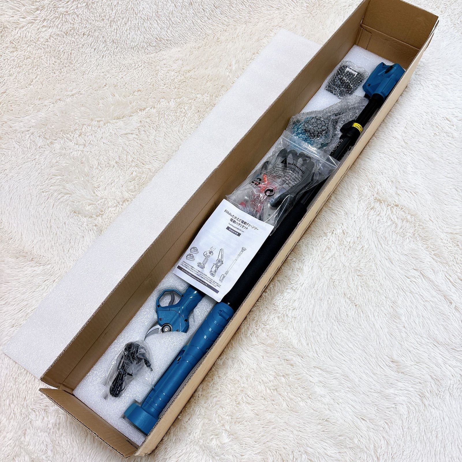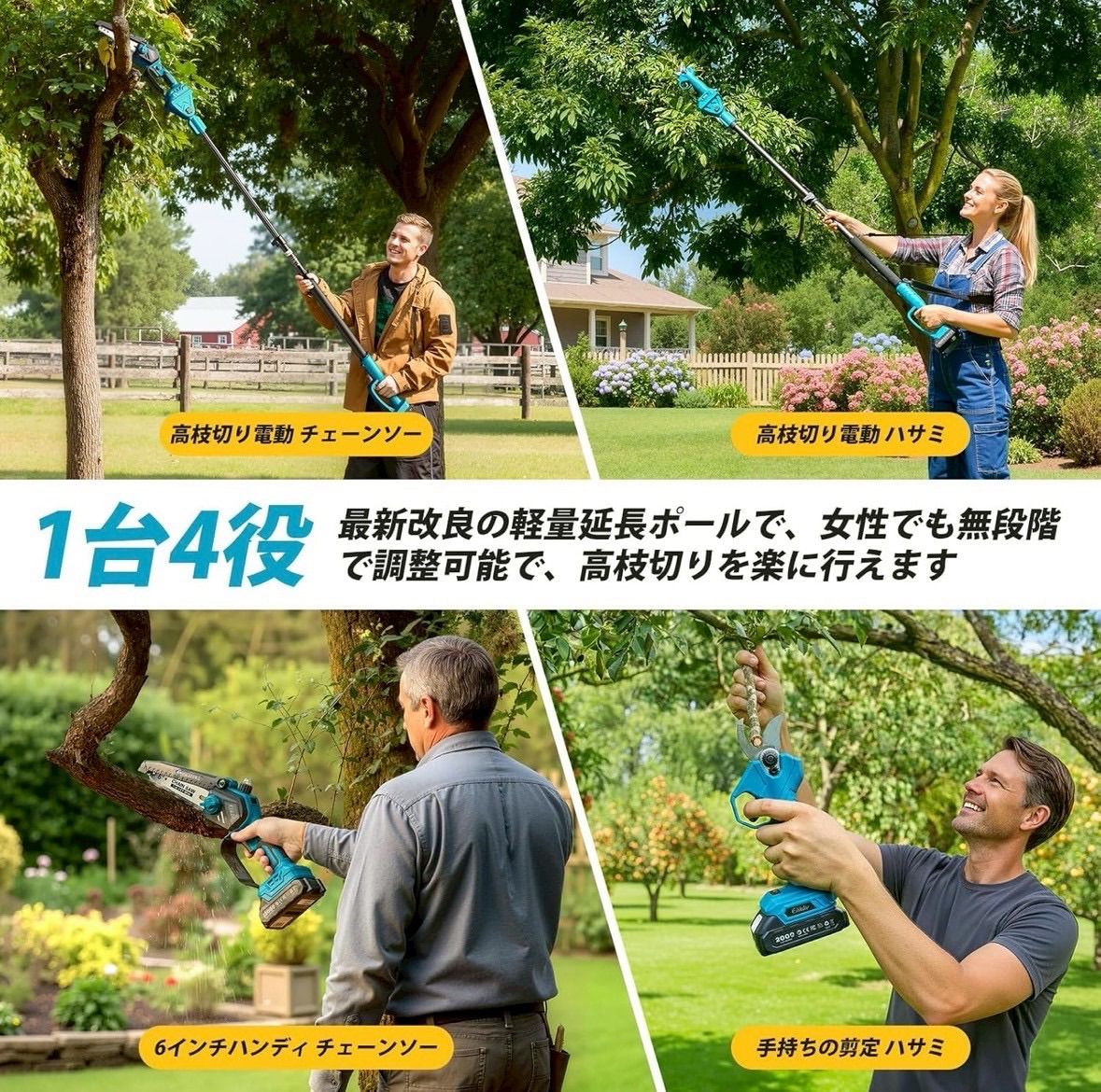 ●1台で多用途!高枝切り電動チェーンソー&剪定ばさみセット