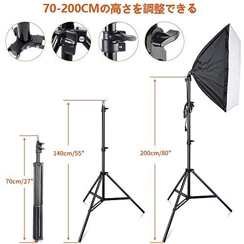 【ソフトボックス】2*50*70cmのソフトボックスは高品質の石模様反射材で作られて、優れた耐熱性があり、光を拡散して、完璧な照明を与えます。ソフトボックスの上部は最大210まで調節でき、数分だけでスタンドの角度を設置します。