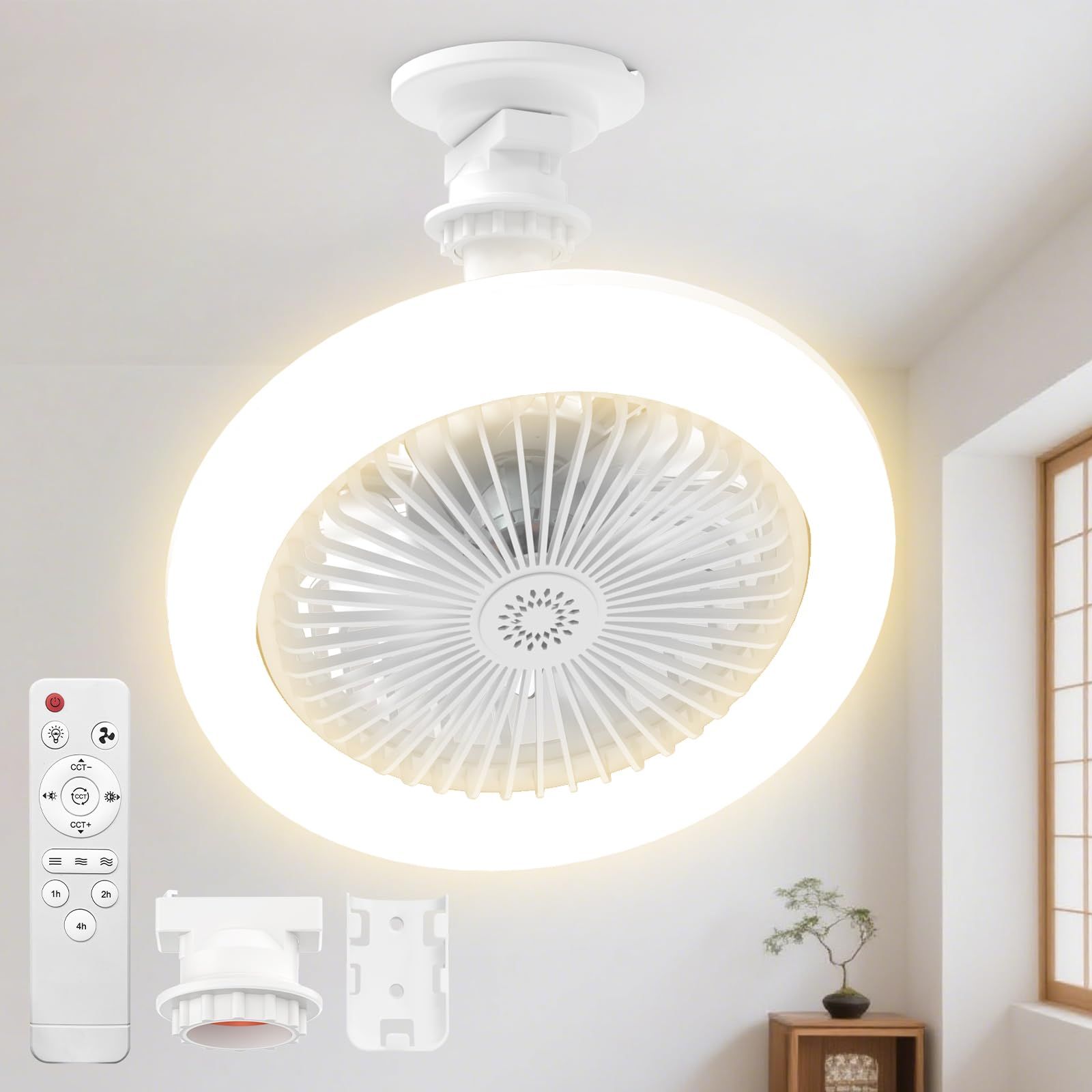 【壁スイッチのメモリー・省エネ】ATOPSUN シーリングファンライト ファン付き照明 LED シーリングファン 小型 扇風機 天井 24W 100W相当 2000LM E26口金 DCモーター 無階段調色調光 3段階風量調整 タイマー機能 6畳小型 国内発送