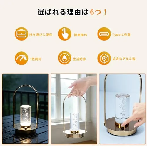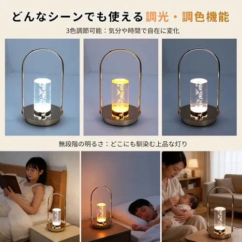 テーブルライト 癒しの間接照明 テーブルランプ おしゃれ 授乳灯・安眠ランプに コードレス 3600mAh 卓上ライト タッチ式 LED スタンドライト 無段階調光 目に優しい 北欧風 スタンドライト 3色モード バー キャンプ 常夜灯 枕元 寝室 ベッドサイド リビング用 (LED電球付き/省エネ) 卒業祝い 誕生日プレゼント 5年保証 国内発送