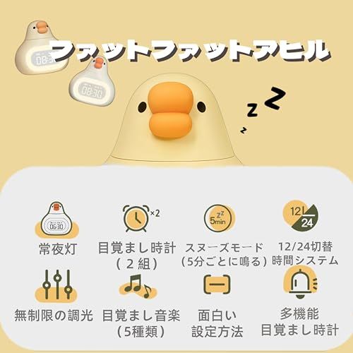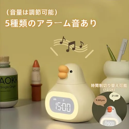 アヒル型多機能ナイトライト目覚まし時計 1500mAh大容量バッテリー