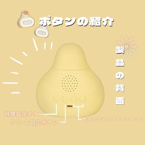 【目覚まし時計】目覚まし時計設定ボタンを軽く押し、/-ボタンで時間を調整します。ペンギンランプには