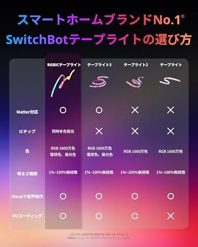 SwitchBot RGBIC LEDテープライト アレクサ Matter対応 - スイッチボット 間接照明 RGB ライト 1600万色 高輝度 電球色 昼白色 昼光色 マルチカラー 無段階 調光調色 Wi-Fi Bluetoothに対応 5m 切断可能 PUコーティング Alexa Google Home Siriに対応 クリスマス 飾り 国内発送