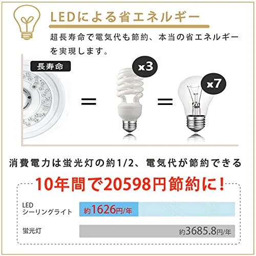 【高い省エネ性能&高演色性】低エネルギー消費LEDランプビーズ、エネルギー節約率60%、効果的に電気代を節約する。定電流電源は均等に発光し、ストロボなしで安定し、効果的に働くときや子供が遊ぶときの目の疲れを軽減します。高い演色評価数(CRI85Ra)により、物体の色がより自然に見え、目に心地よく映ります。自然な太陽光に近い波長を実現し、眼を保護します。