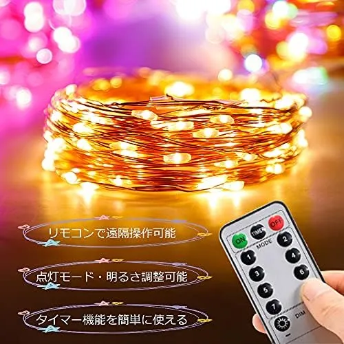 【8種点灯モード・リモコン付き】 8種類の点灯モード(常灯・フェード・フラッシュなど)をリモコンで自由に切替可能。6時間自動点灯/18時間自動消灯のタイマー機能付きで、毎日の操作も簡単。お好みの明るさとリズムで、リビング・寝室・パーティー・イベントなど多彩な空間を演出できます。