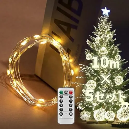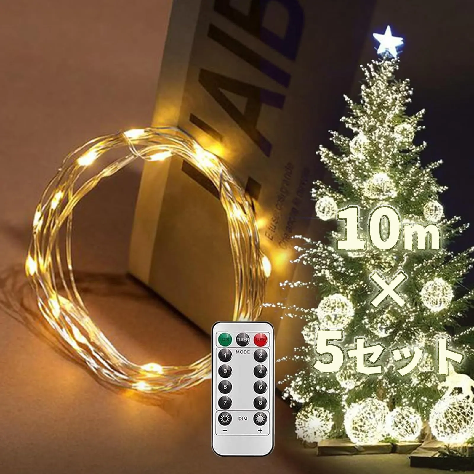 5セット 日本現地法人【2026防水型イルミネーションライト10m】100球 ジュエリーライト クリスマスツリーライト 電池式 LED電球 電球色 破損しにくい 調光可能 リモコン付き 屋外照明 イルミネーション クリスマス電飾 誕生日 ガーデンライ 国内発送