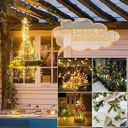 【柔軟な銅線ワイヤー・断線防止設計】 しなやかで高耐久な銅線ワイヤーを採用。好きな形に曲げて固定できるので、ツリー・カーテン・植物・家具・ボトルなど自由なアレンジが可能です。断線しにくく、繰り返し使えるエコ仕様。軽量で取り付けも簡単です。