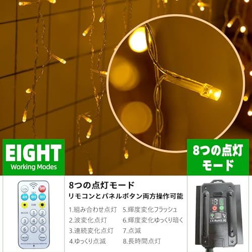 「豊富なカラーバリエーション」発光色はウォームホワイト、ホワイト、ブルー、パープル、カラフルの5色から選べ,お好みのカラーで暮らしを彩ってください。各色のライトストリングは、8種類の点灯モードを搭載してソーラーパネルの後ろのボタンやリモコンでお好みの点灯パターン、輝度、点灯時間を設定すればご家庭やお店、広場やパーティ会場を綺麗に彩ります。