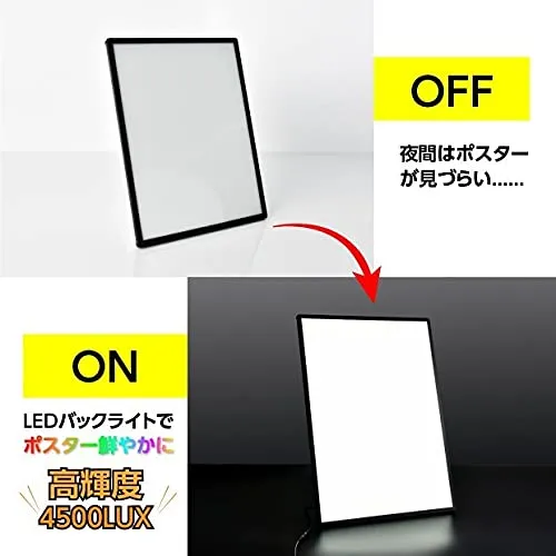 看板 額縁 ポスターフレーム LEDパネル 壁付けLEDパネル 壁付けLED看板 LEDポスターパネル 壁付グリップ式 光るポスターフレーム 薄型 シルバー A2 435mm×600mm led-pu-a2-sv 国内発送