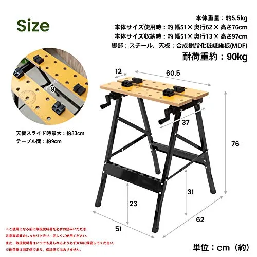 コーナン オリジナル 万能作業台 ワークベンチ パウダーコーティング ブラック エンジニアリングウッド 幅605X奥行620X高さ755mm (使用時) LFX?50?076 国内発送