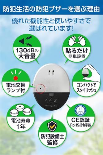 【安心・簡単・防犯】 自宅や事務所、倉庫などの 防犯 にぴったりなドア、窓用の振動検知式 防犯アラーム です。事前の防犯対策をきっちり行うことで 空き巣 や 強盗対策 は可能です。もしものときの不安から解放され、小さなセンサーで大きな安心感が得られます。