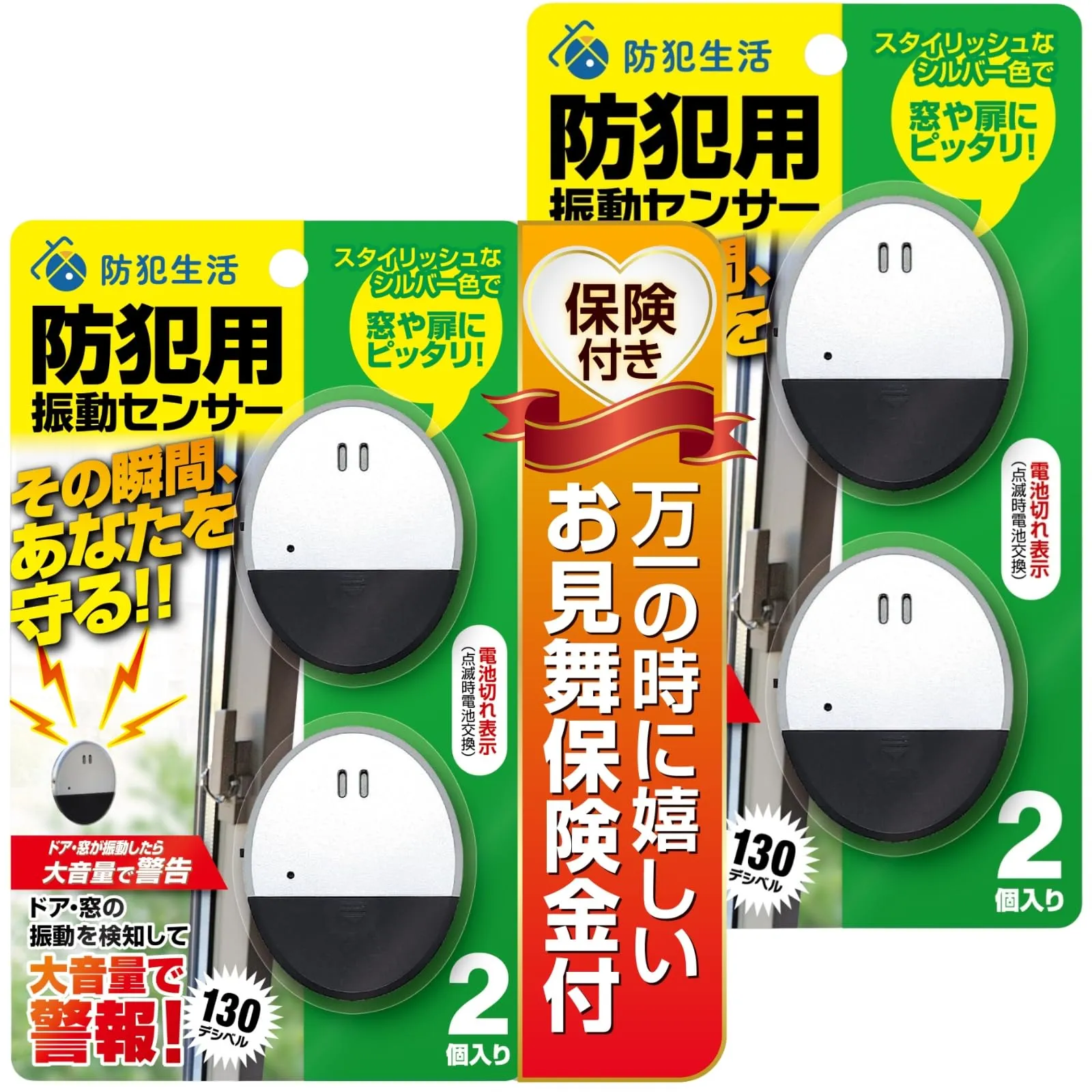 防犯ブザー 窓 【防犯設備士監修】 ドア、窓の振動で大音量警報 窓 防犯 防犯ドアアラーム 防犯生活 (振動センサー計4個(2個入り×2パック)) 国内発送