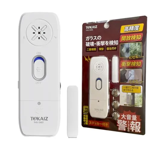 TOKAIZ 防犯アラーム 窓 ドア用 振動【衝撃検知+開放検知】130dB大音量 一戸建て 侵入警報 高精度センサー搭載 防犯ブザー 大人 女性 子供 開放 ホームセキュリティ 待機時間1年 THG-SA02 (4個入り) 国内発送