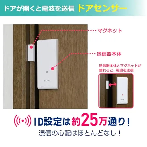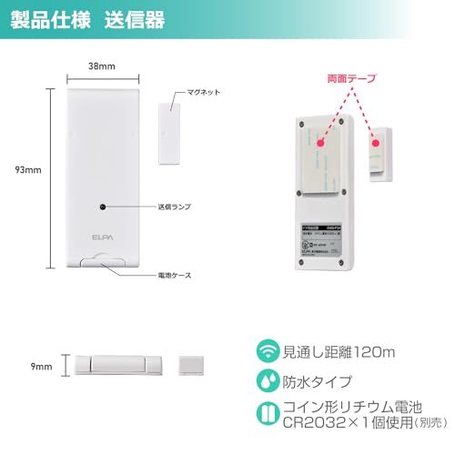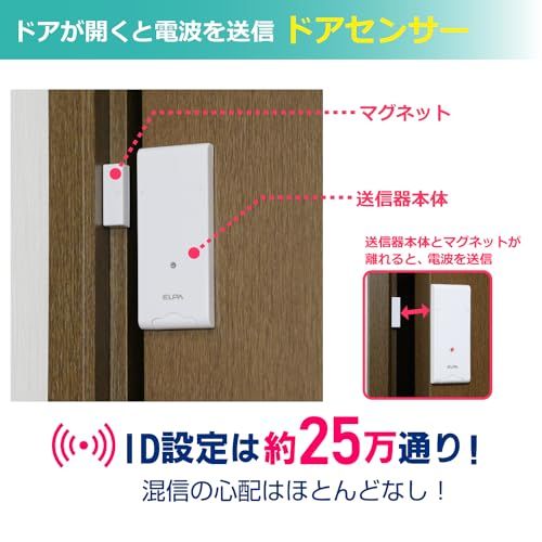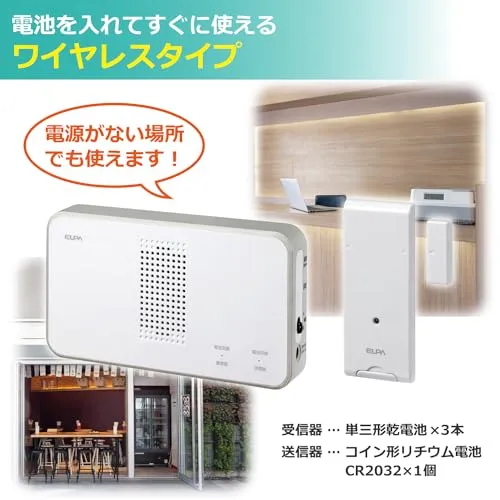 エルパ(ELPA) ワイヤレスチャイムドア開閉センサーセット 介護 オフィス 店舗 無線 配線不要 防犯 開閉検知 防犯転用 EWS-S5034 国内発送