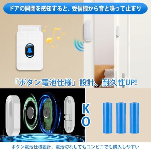 DAYTECHドアセンサー,コンセント式ドアベルセンサー 音量調整できるドアベルチャイム 玄関ドア開閉センサー 部屋 事務所 店舗自動ドア用 開閉検知 防犯対策 2AC式受信機と1電池式マグネットセンサ 国内発送