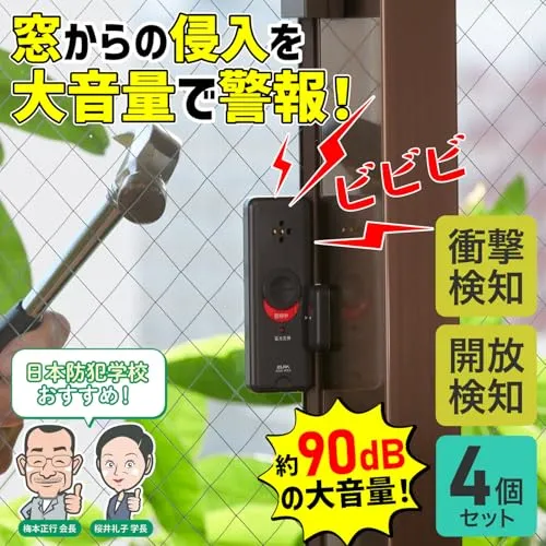 エルパ(ELPA) 【日本防犯学校学長推奨】窓ピタッアラーム 防犯 セキュリティ 窓からの侵入を防止 アラーム 窓に貼るだけ簡単防犯 衝撃+開放検知式(ダブル検知タイプ) 4P ダークブラウン ASA-W13-N4P(DB) 国内発送