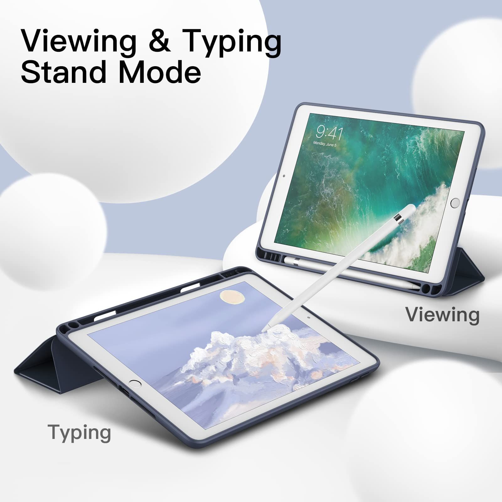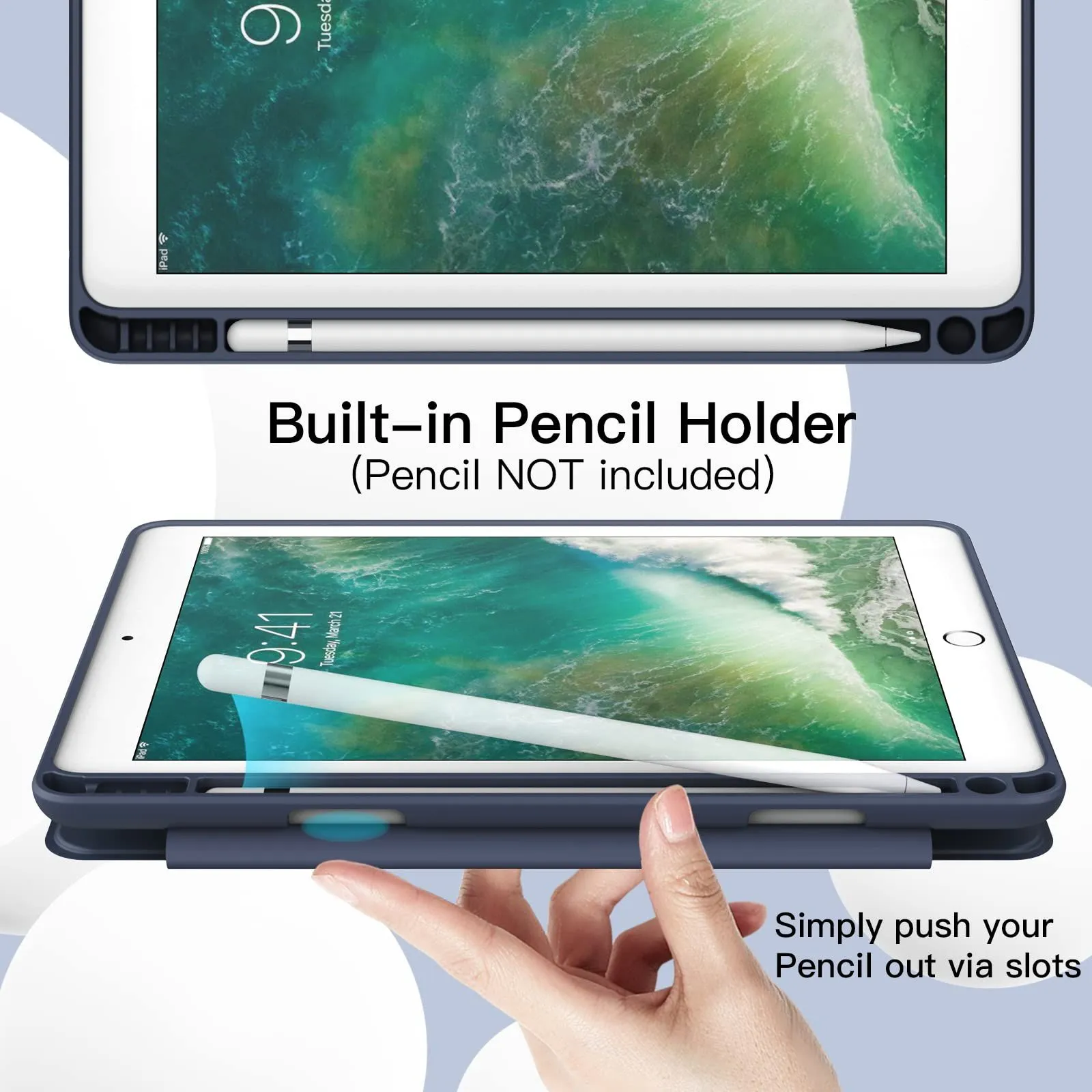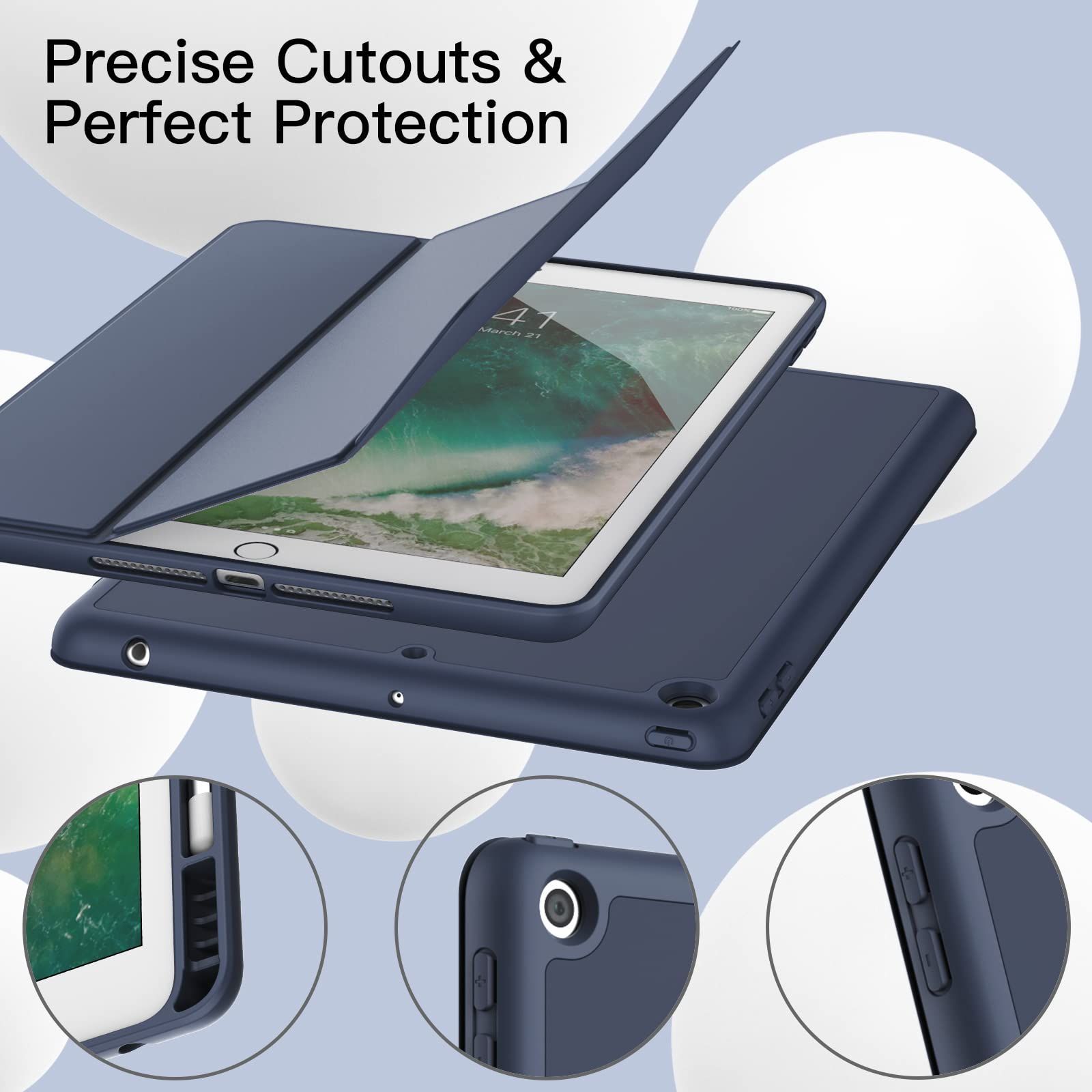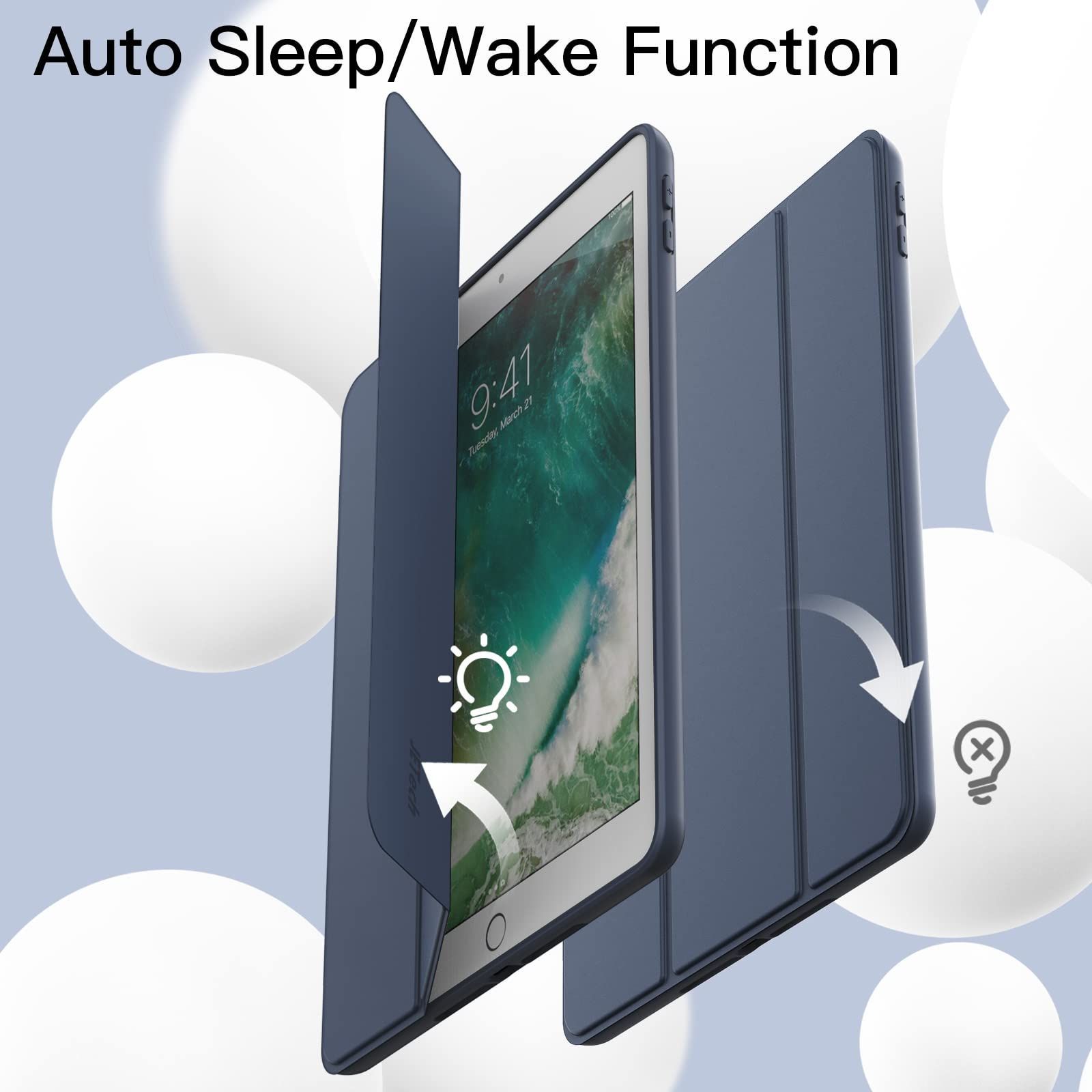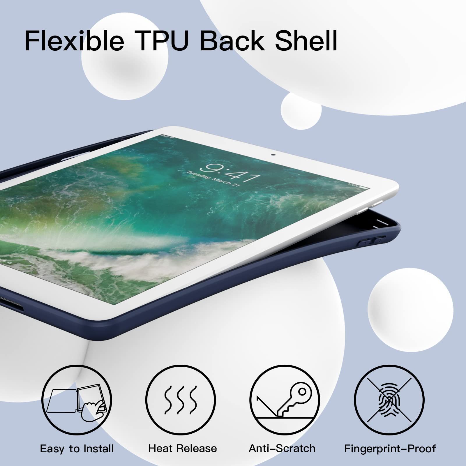 JETech iPad 9.7インチ ケース(第6/5世代、2018/2017モデル用)Pencilホルダー付き ペンシル ソフトTPUバック スリム保護カバー オートウェイクアップ/スリープ機能付き (ディープネイビー)
