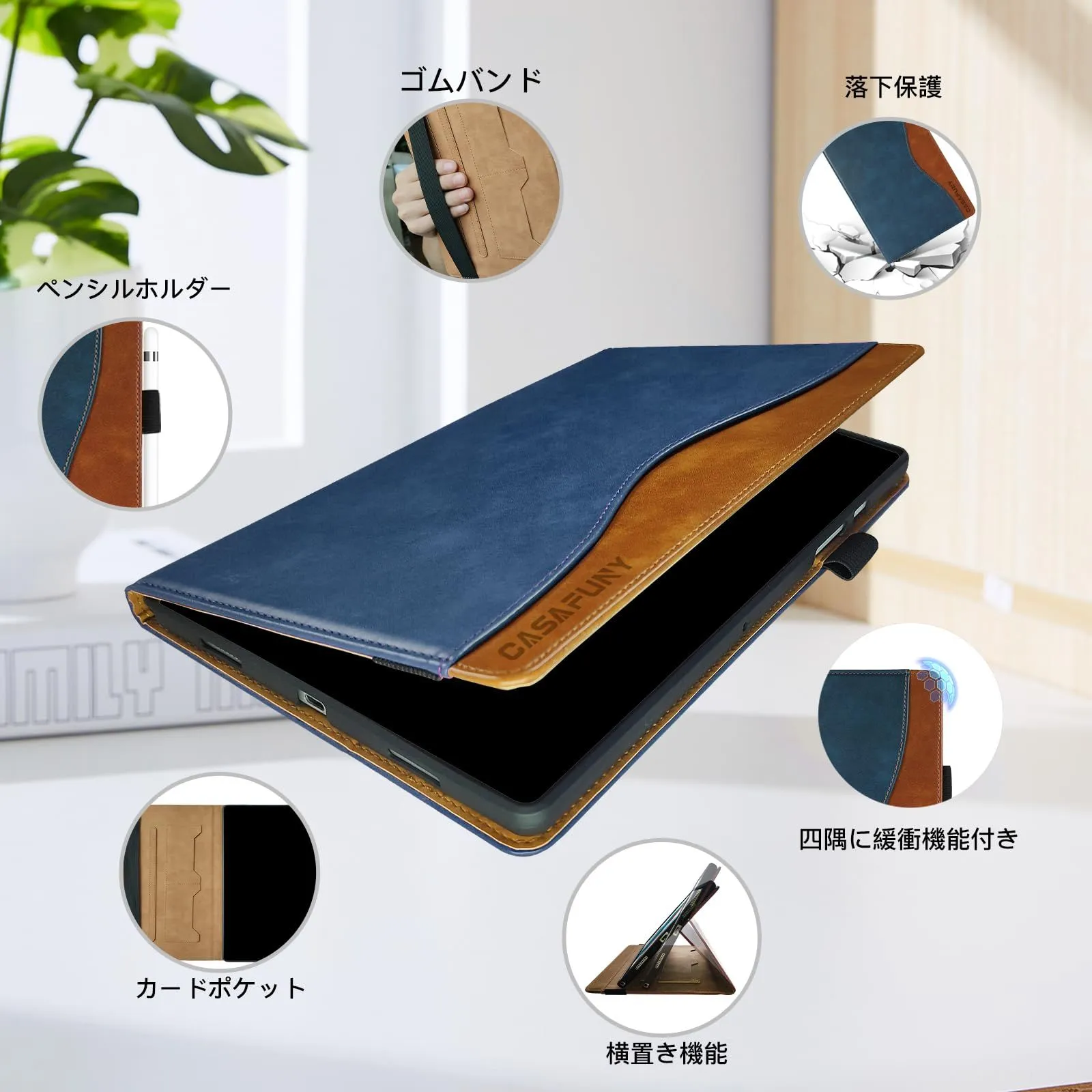 iPad 9.7 ケース CASAFUNY iPad 9.7 2018/2017ケース シンプル iPad 9.7 ケース 2018と2017年モデル アイパッド 第5 / 6世代 ケース PUレザー tpu材質iPad Air 2 / iPad Air ケース 肌触り良い iPad Pro 9.7 ケース カードポケット スタンド機能 傷つけ防止 指紋防止 iPad 9.7インチ ケース,青色