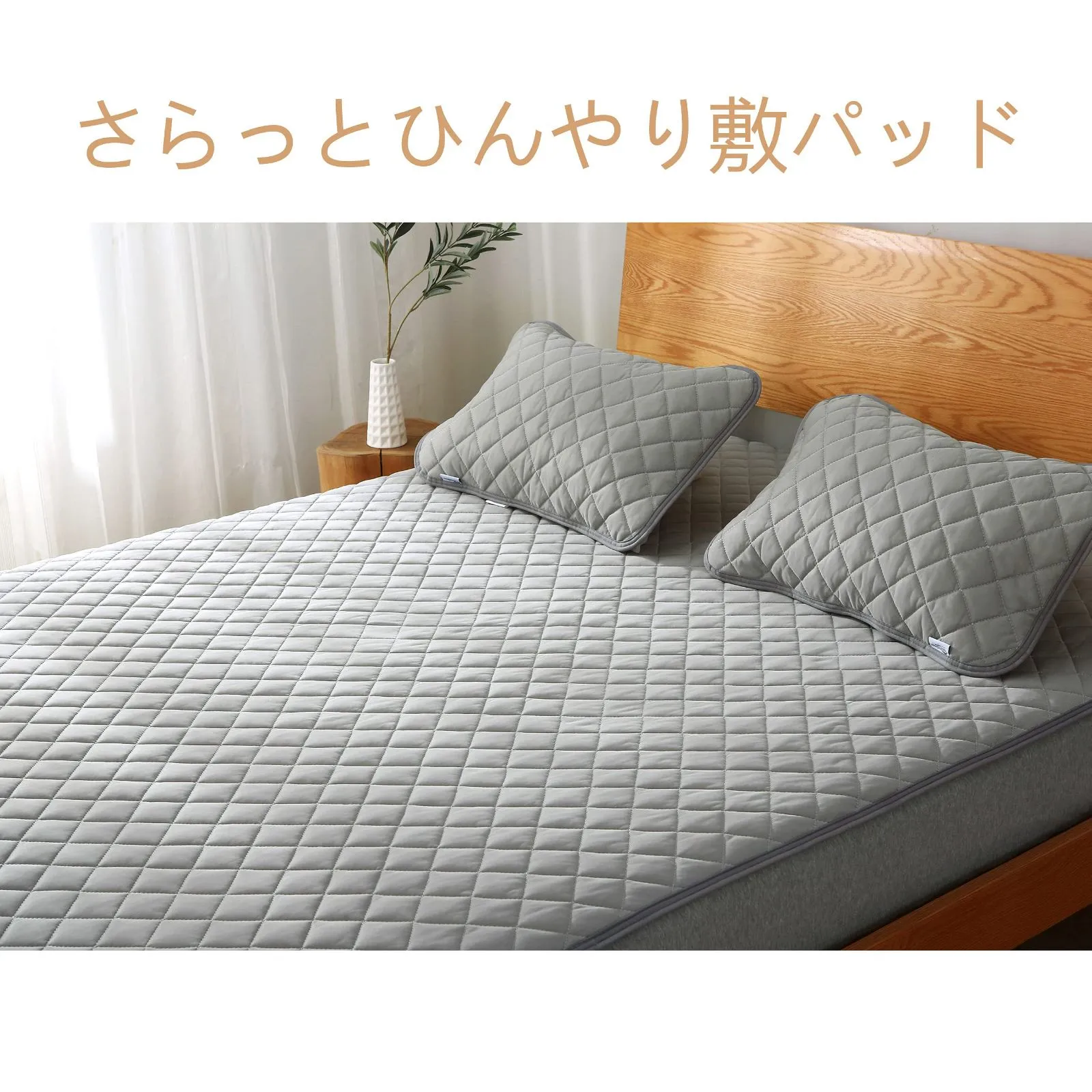 【さらっとひんやり敷パッド】さらっと冷感生地素材使用、汗をかいてもべたつきにくい。この敷パッドはひんやり感よりさらっと感が強いです、ひんやりさらっとご使用したい方にオススメです。