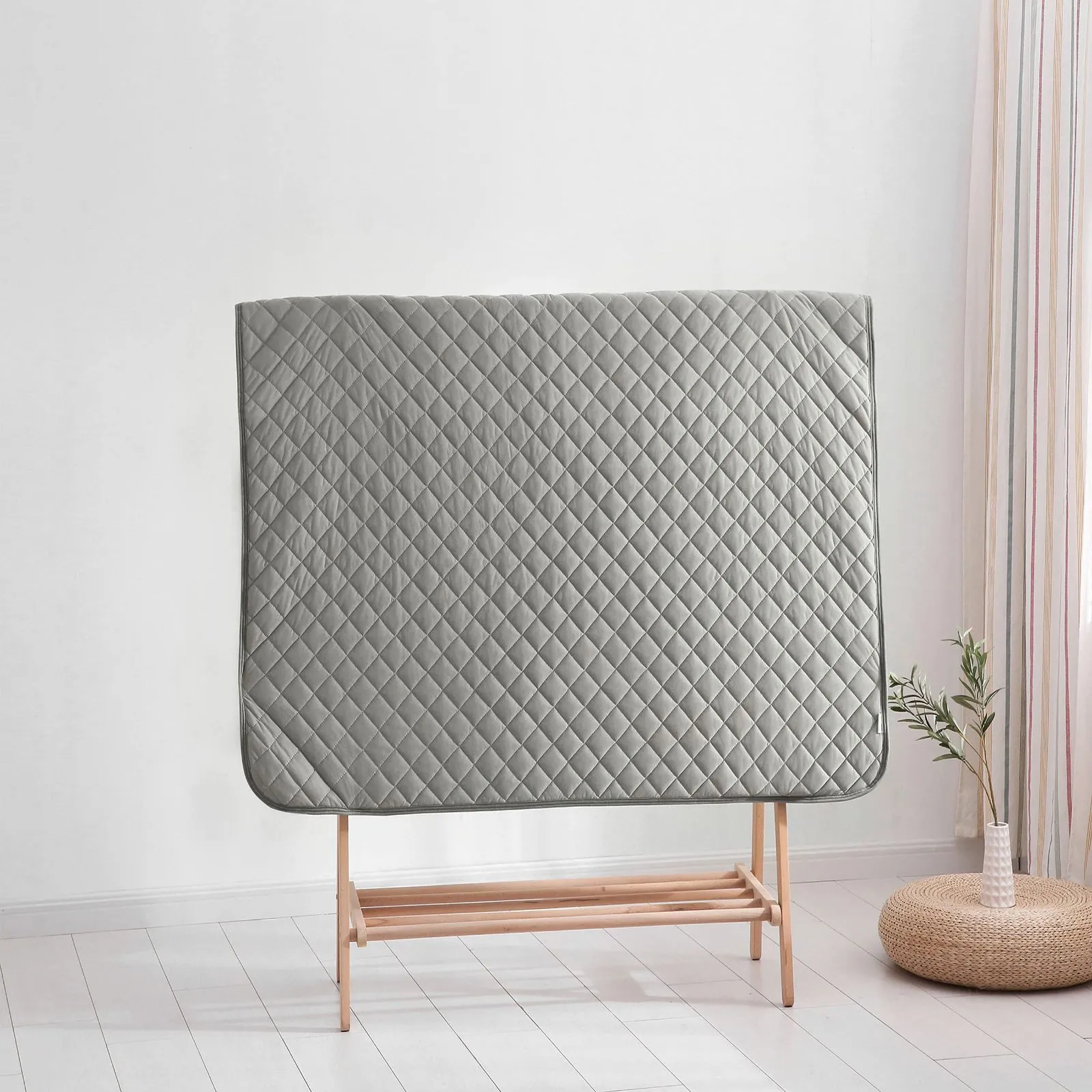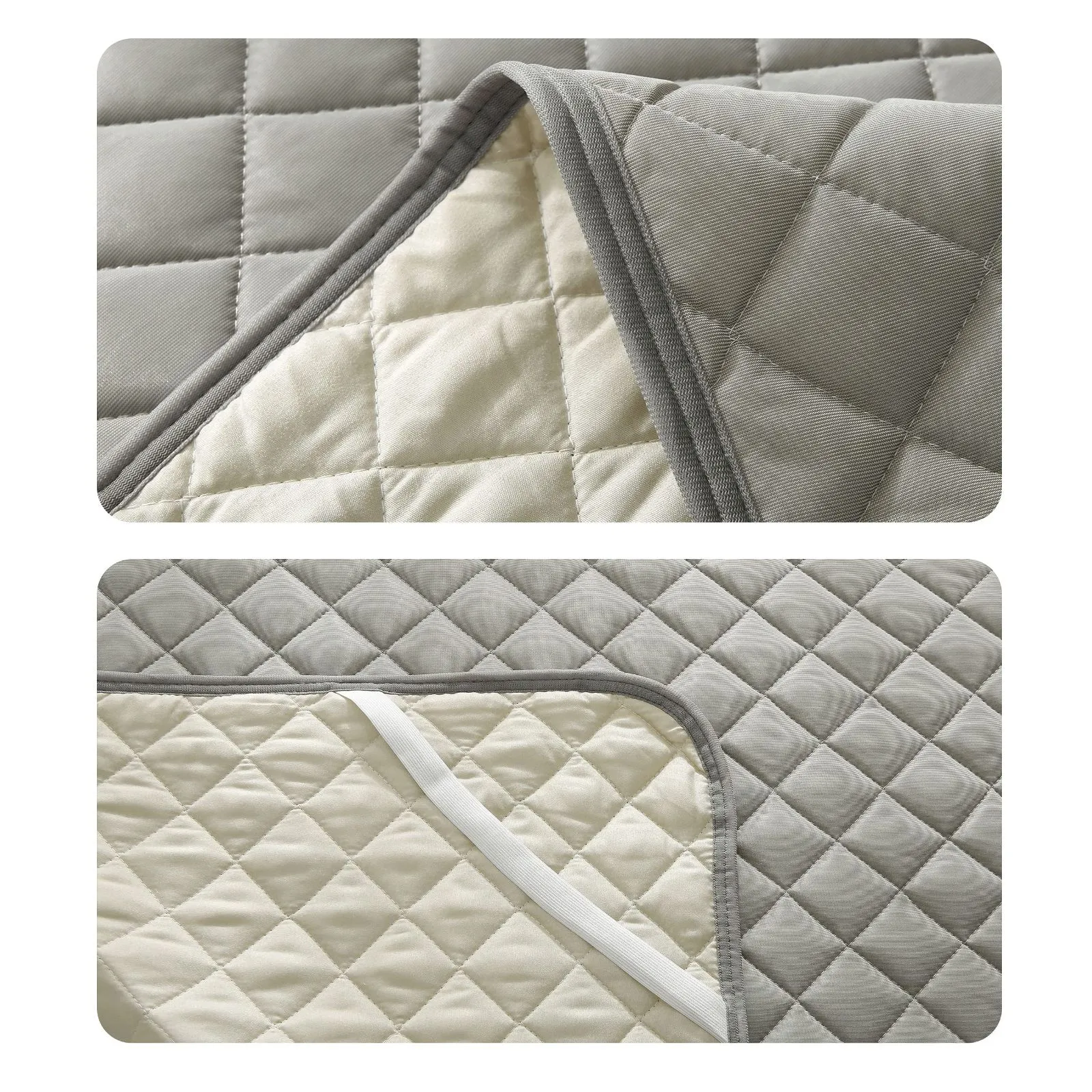 【ダイヤ形キルティング】等間隔にダイヤ形のキルティングを施しています。それにより、使用時・洗濯時にわたズレが起こりにくい、ふっくらしたぽこぽこ感が心地よいです。