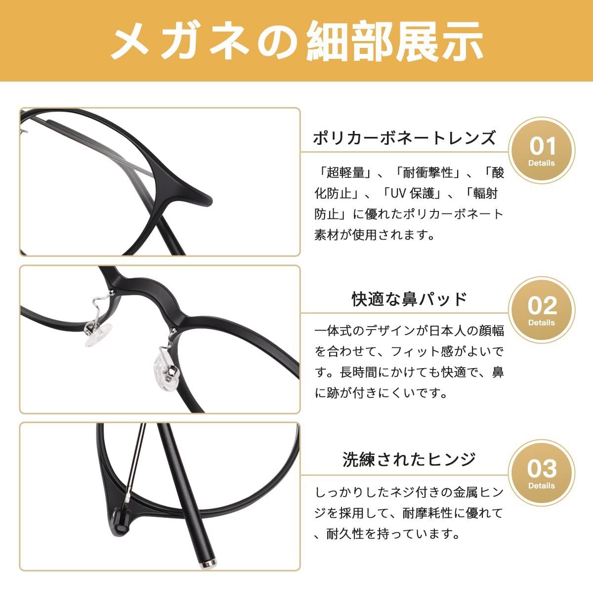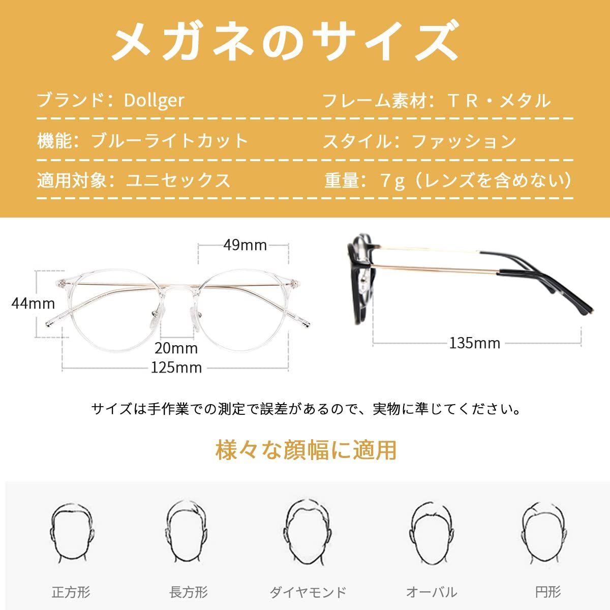 【ブルーライトカット・UV400保護】Dollgerのメガネは高品質のブルーライトカットの透明レンズを採用して、スマホ、パソコンやテレビなどのスクリーンからの目に有害なライトを遮断できます。UVカット率も99%に達成して、肌を老化させる原因と言われている紫外線をカットでき、紫外線防止対策になります。
