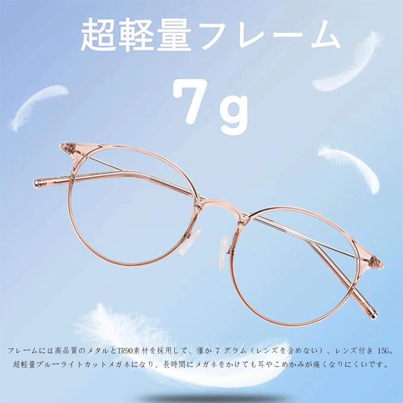 [Dollger] ブルーライトカット メガネ 丸い 度なし 8g超軽量 TR90 UVカット 紫外線 PC 伊達 透明レンズ ラウンド 小顔効果 おしゃれ ファッション レディース メンズ