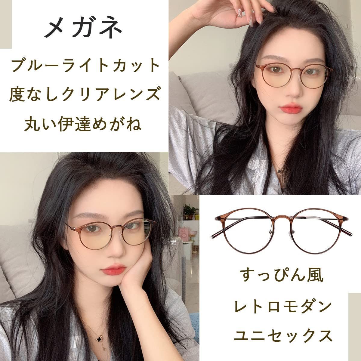 【丸いファッション眼鏡】フェイスラインをスタイリッシュに、ファッション性に富んだラウンドデザインを採用しました。様々な顔の形・幅に合わせて優しくフィットして、小顔効果を持っています。また、軽やかでストレスのないことで人気があり、男女問わずご使用いただけます。