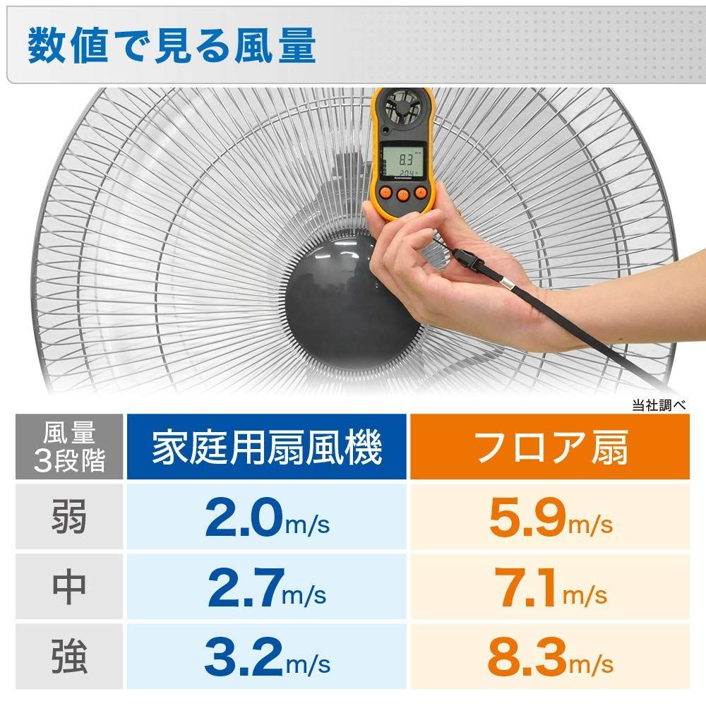 風の強さは、弱モードでも家庭用扇風機の強モード以上の強さがあるので、強力な風を広範囲に送風させたいという方にピッタリです。