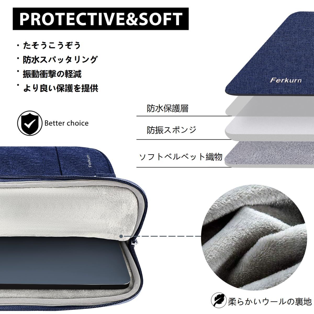 [Ferkurn] パソコンケース PCケース 手提付き 360°保護 ノートパソコンケース pcバッグ 撥水加工タブレット ケース MacBook Air/Pro/iPad/Surface/Chromebook シリーズ/Asus/Lenovo/レノボ/Dell/レッツノート/HP/NEC/Dynabook/Acer/富士通 対応 パソコンカバー 13 13.3 13.5インチ ブルー