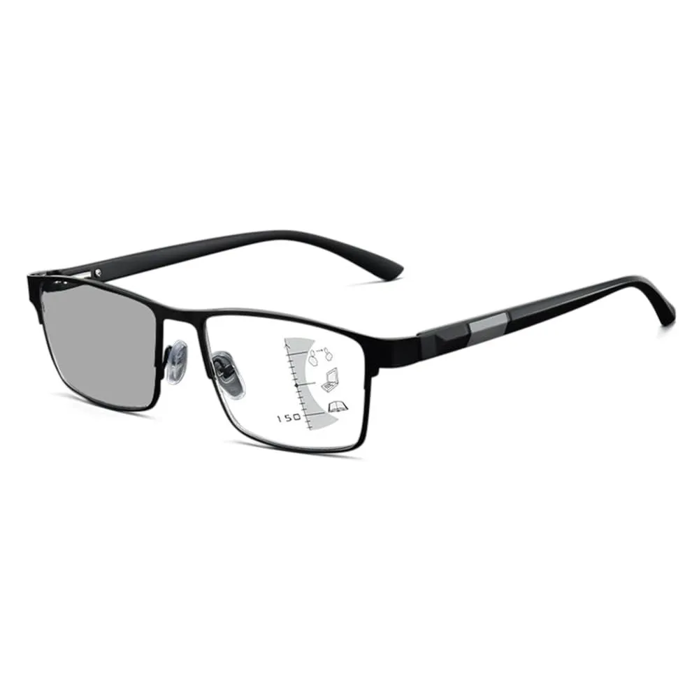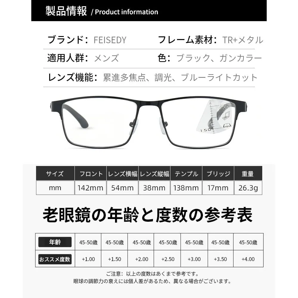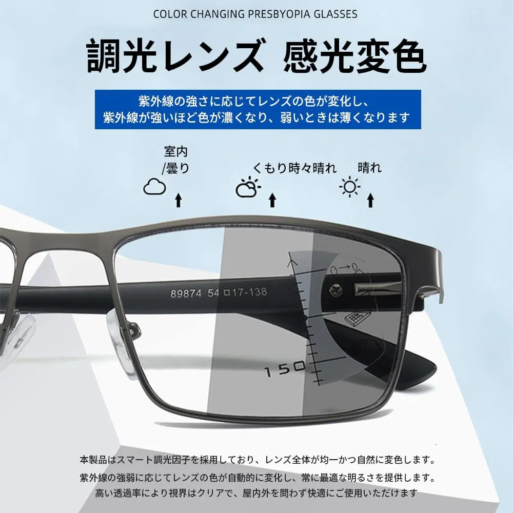 [FEISEDY] 老眼鏡 メンズ 累進多焦点レンズ 調光 老眼付きサングラス 遠近両用 シニアグラス ブルーライトカット リーディンググラス おしゃれ スクエア 軽量 ケース付き B1378