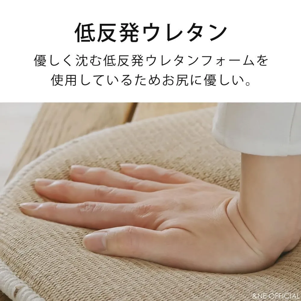 【低反発ウレタン】 中材に優しく沈む低反発ウレタンフォームを使用しているため、 お尻に優しくずっと座っていてもお尻が痛くなりません。