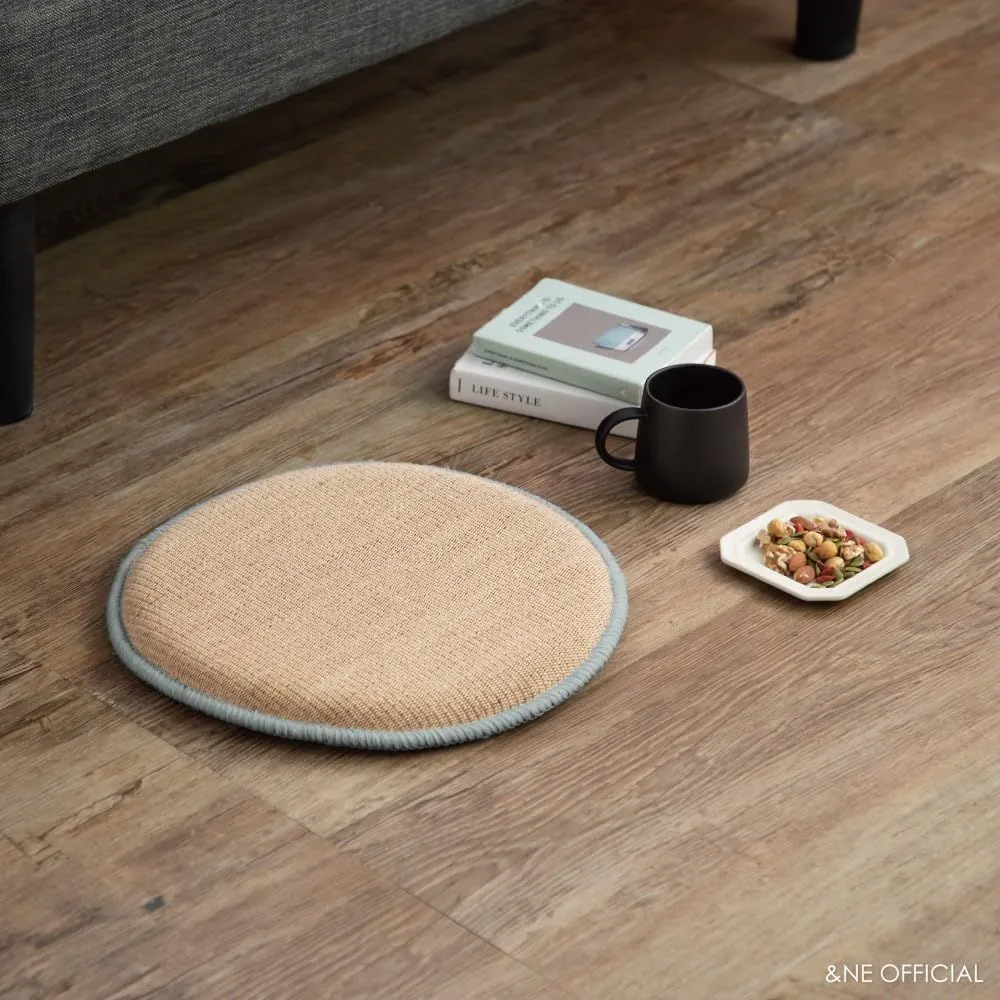 アンドエヌイー(&NE) 低反発ジュートチェアパッド マル カーキ 直径35cm×厚さ2.5cm 丸型 低反発 ウレタン 夏 消臭 通気性 麻 蒸れない 滑り止め 厚型 和 さらさら 紐なし インテリア NEK-206M-KH