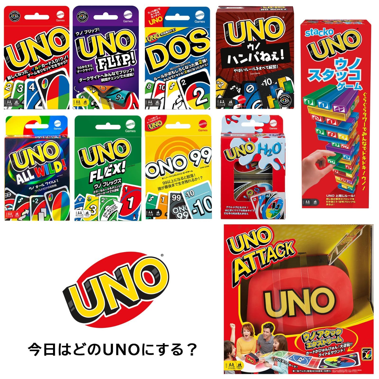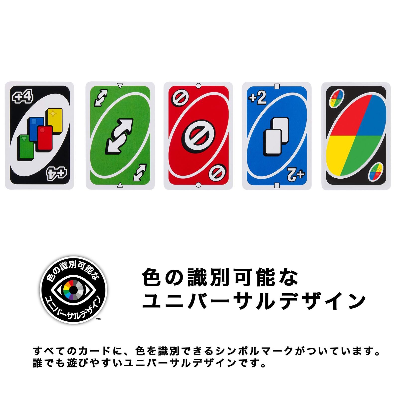 【1】オリジナル プレイ人数:2~10人 対象年齢:7歳以上 サイズ(cm):W9.2×D1.9×H14.6 大人から子どもまで、家族や友達みんなで楽しめます。 ※鉛筆は本商品に入っていません。 発売以来、不動の人気を誇るカードゲームの定番中の定番「UNO(ウノ)」! 配られたカードを誰よりも早く場に切っていくカードゲーム。場に積まれているカードの同じ色か同じ数字のカードを切ることができる。最後の1枚になったら「UNO!」と宣言。手持ちのカードがなくなった人が勝ちとなる。 今回ウノはフルリニューアルされ、ポップになったパッケージデザインだけでなく、カードもより見やすくアップデート。 さらに、新たに4枚のワイルドカード(特殊カード)が追加! 大逆転を可能にする、指定したプレイヤーと全部のカードを取りかえできる「とりかえっこワイルド」。好きなルールをなんでも書き込める「白いワイルドカード」。 戦略を立てながらゲームを進めてよりエキサイティング! もちろんワイルドカードなしの、オリジナルウノと同じルールでもプレイ可能。大人から子供まで、家族や友達みんなで楽しめます。 [セット内容]カード:112枚、説明書:1枚 (より) より 定番カードゲーム「UNO」。配られたカードを誰よりも早く場に切っていくカードゲーム。場に積まれているカードの同じ色か同じ数字のカードを切ることができる。最後の1枚になったら「UNO!」と宣言。手持ちのカードがなくなった人が勝ちとなる。ゲーム性をアップさせる特殊カードが入っているので、戦略を立てながらゲームを進めることができる。カード枚数108枚。対象年齢7才以上。2~10人用。 安全警告 無 最後までご確認頂き誠にありがとうございました。 上記をご確認頂き、ご購入いただけましたら幸いです。 何かご不明な点がございましたらお気軽にメッセージからお問い合わせ下さい。