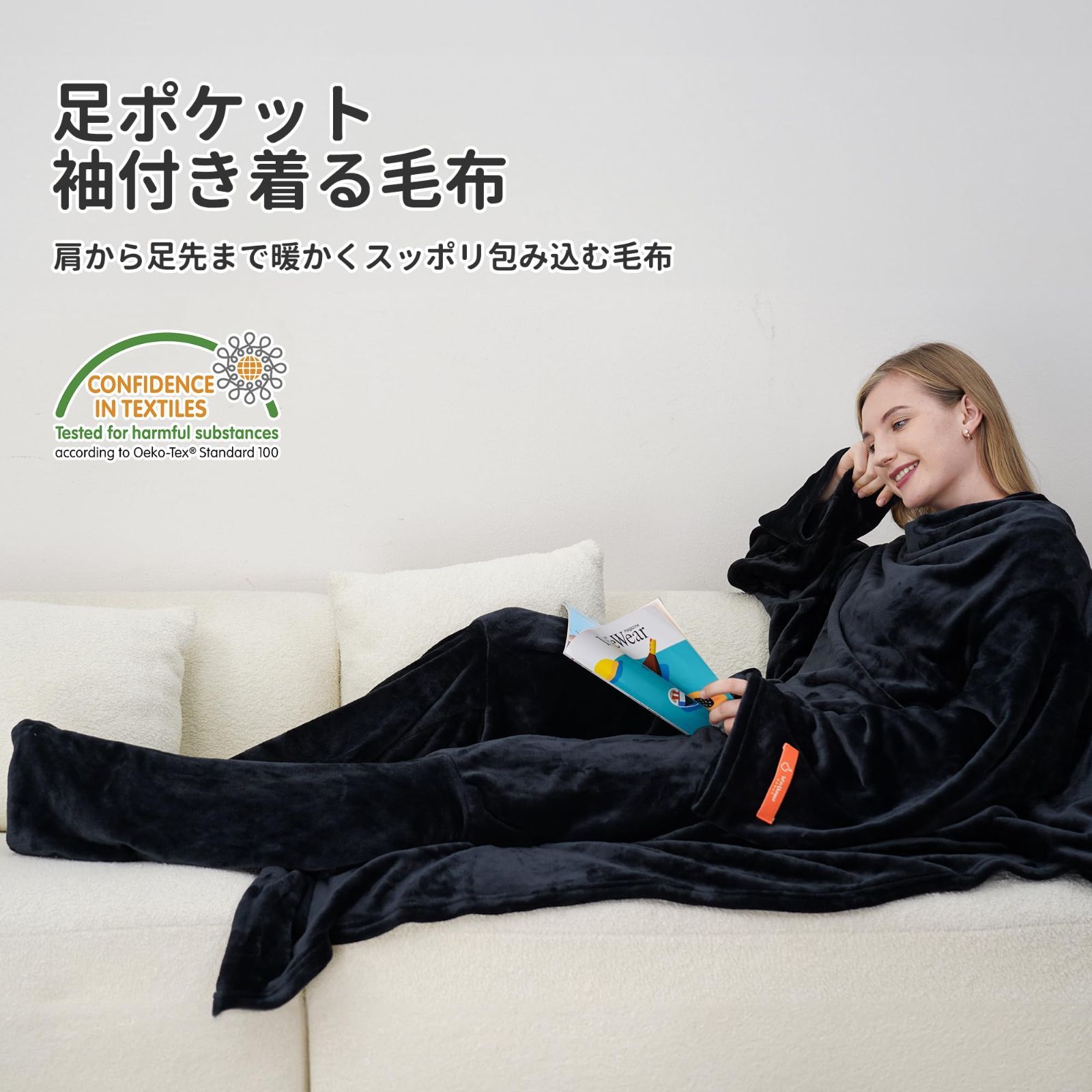 [Winthome] 着る毛布 足ポケット・袖付き毛布 メンズ レディース 足 冷え対策 大きいサイズ ソファー毛布 全身カバー かい巻き お昼寝ブランケット 防寒 保温 背中マジックテープ止め