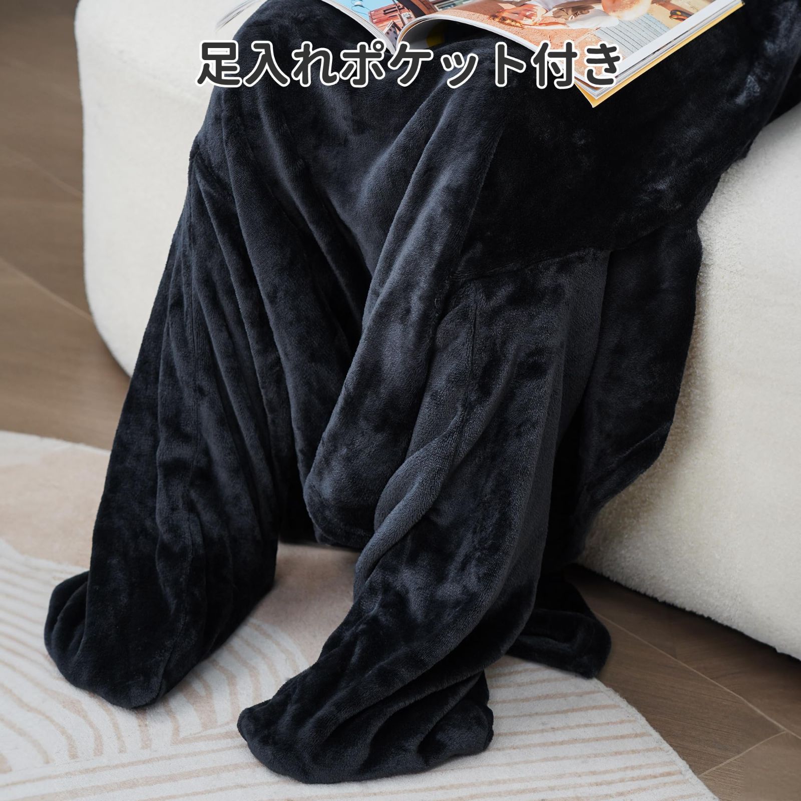 【足先の防寒対策に】足入れポケット付き着る毛布は、足先の防寒対策に便利になります。ベッドやソファでの読書やテレビ鑑賞、パソコンを使ってゲームや仕事する時などに首から足先まで暖かくなります!寒くなる季節に1枚着あれば重宝する事間違いなし。