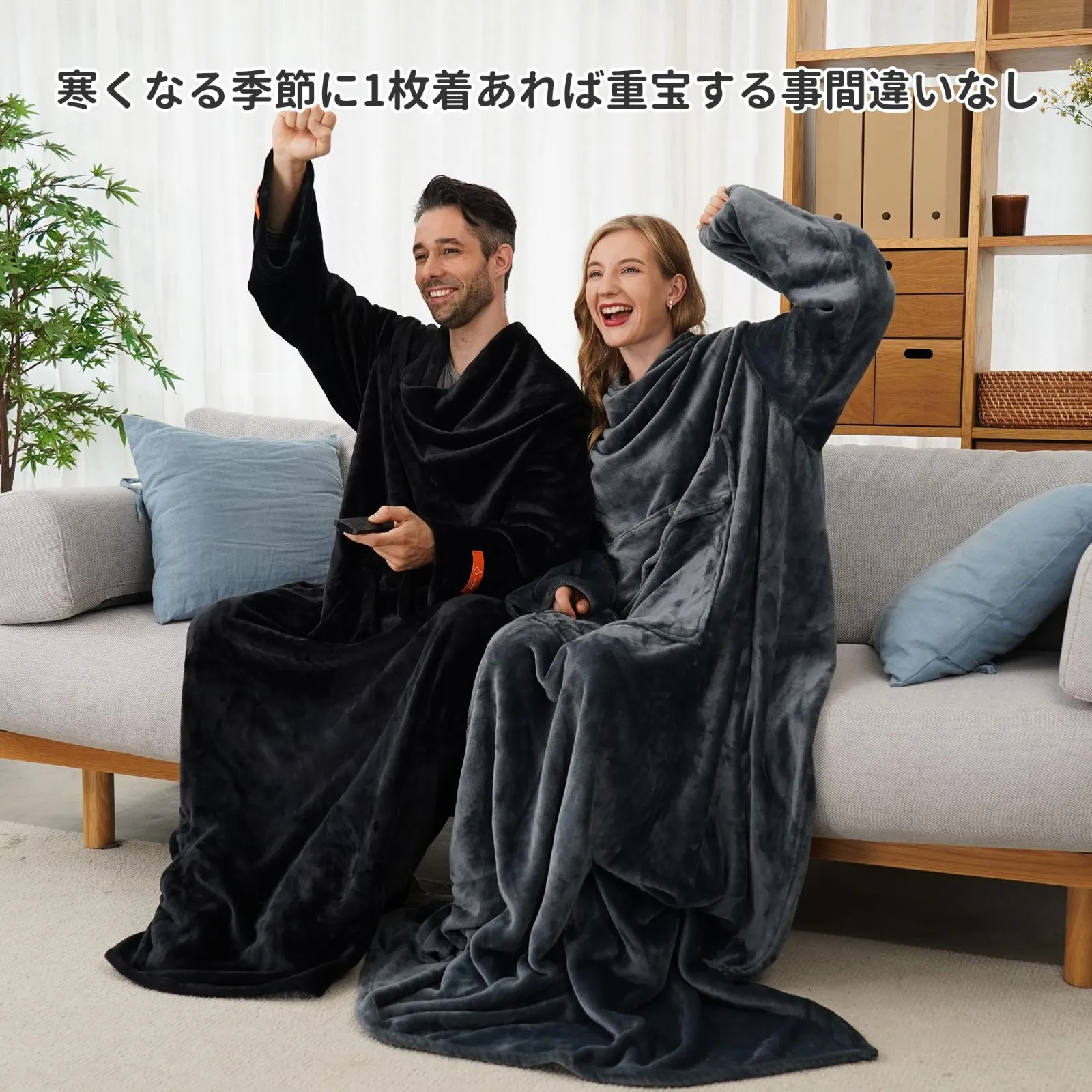 【人気商品】レディース 足 冷え対策 メンズ 大きいサイズ ソファー毛布 足ポケット・袖付き毛布 全身カバー かい巻き 着る毛布 お昼寝ブランケット 防寒 [Winthome] 保温 背中マジックテープ止め