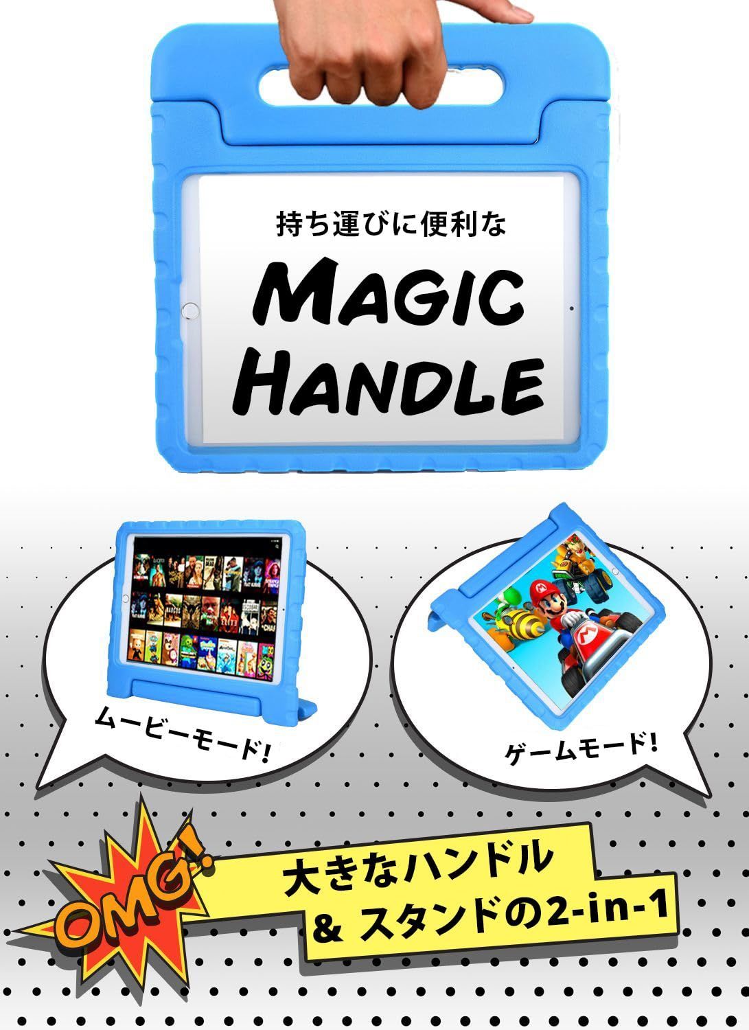 【 2 in 1 ハンドル&スタンド 】 小さなお子様の手にも握りやすい大きなハンドルを装備