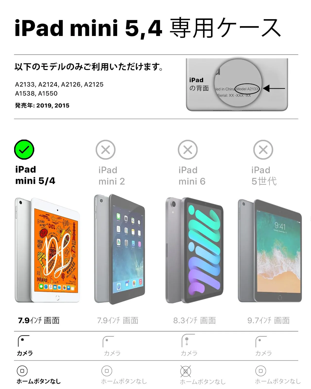 【 iPad Mini 5 (2019), Mini 4 (2015) 専用デザイン 】 全ボタン、スピーカー、カメラ、充電口用のカットアウト設計