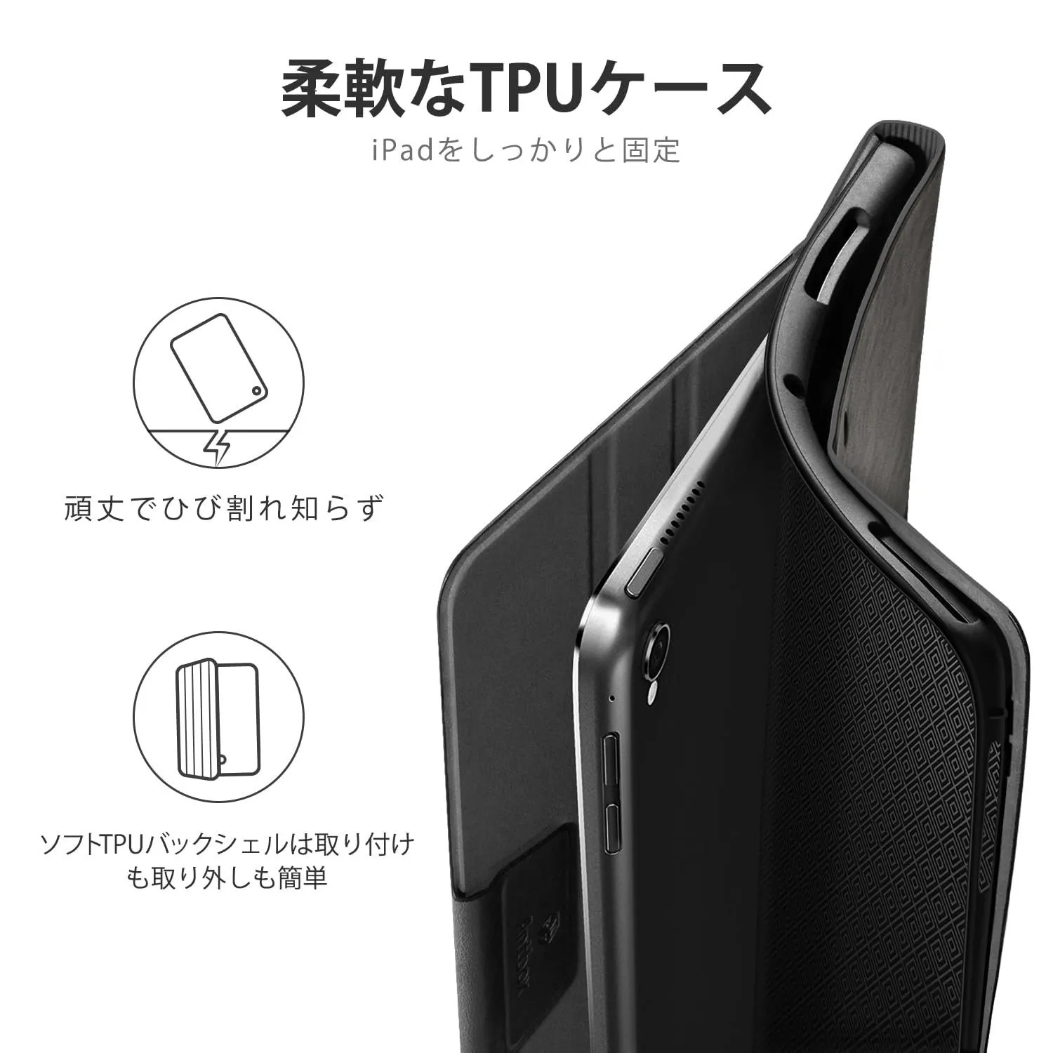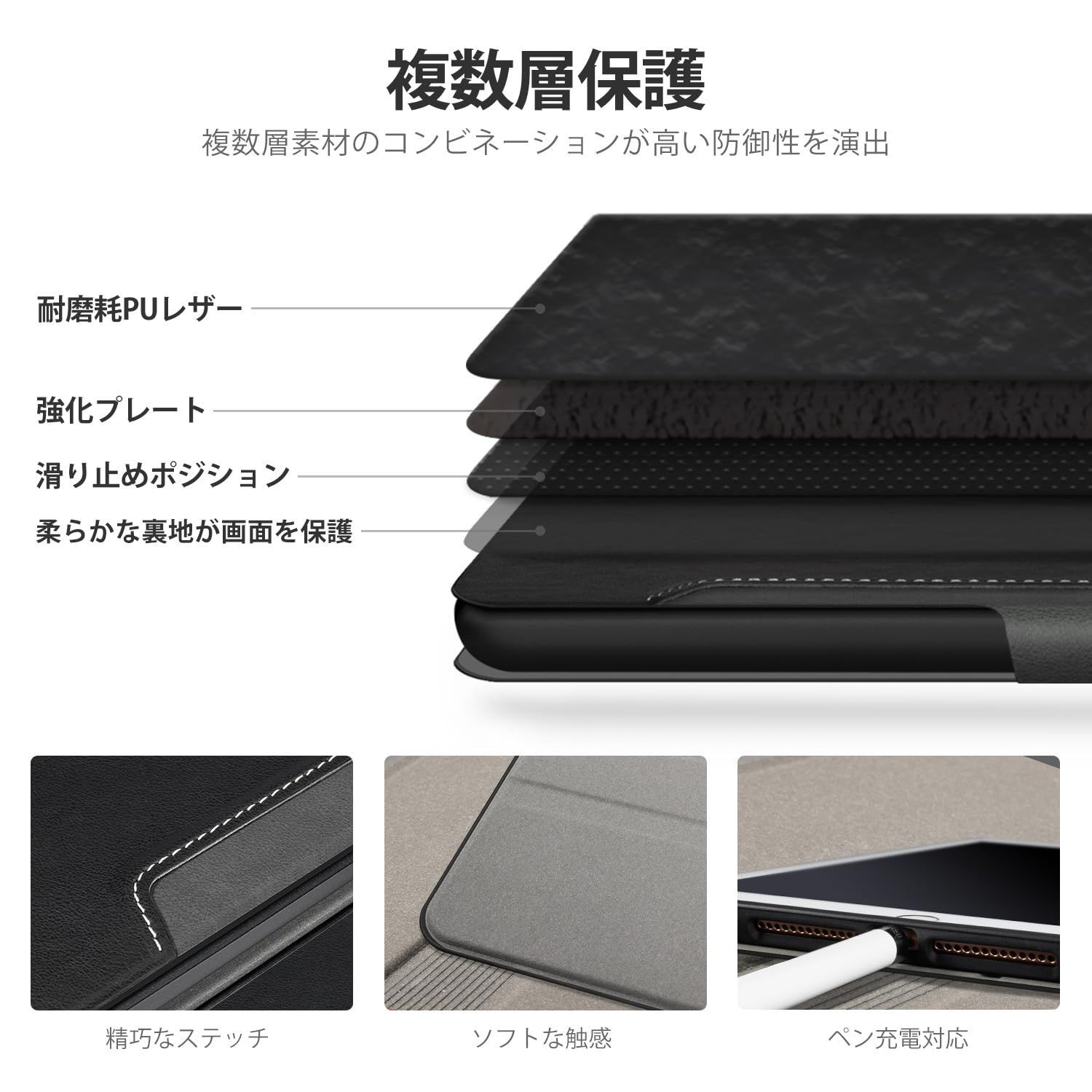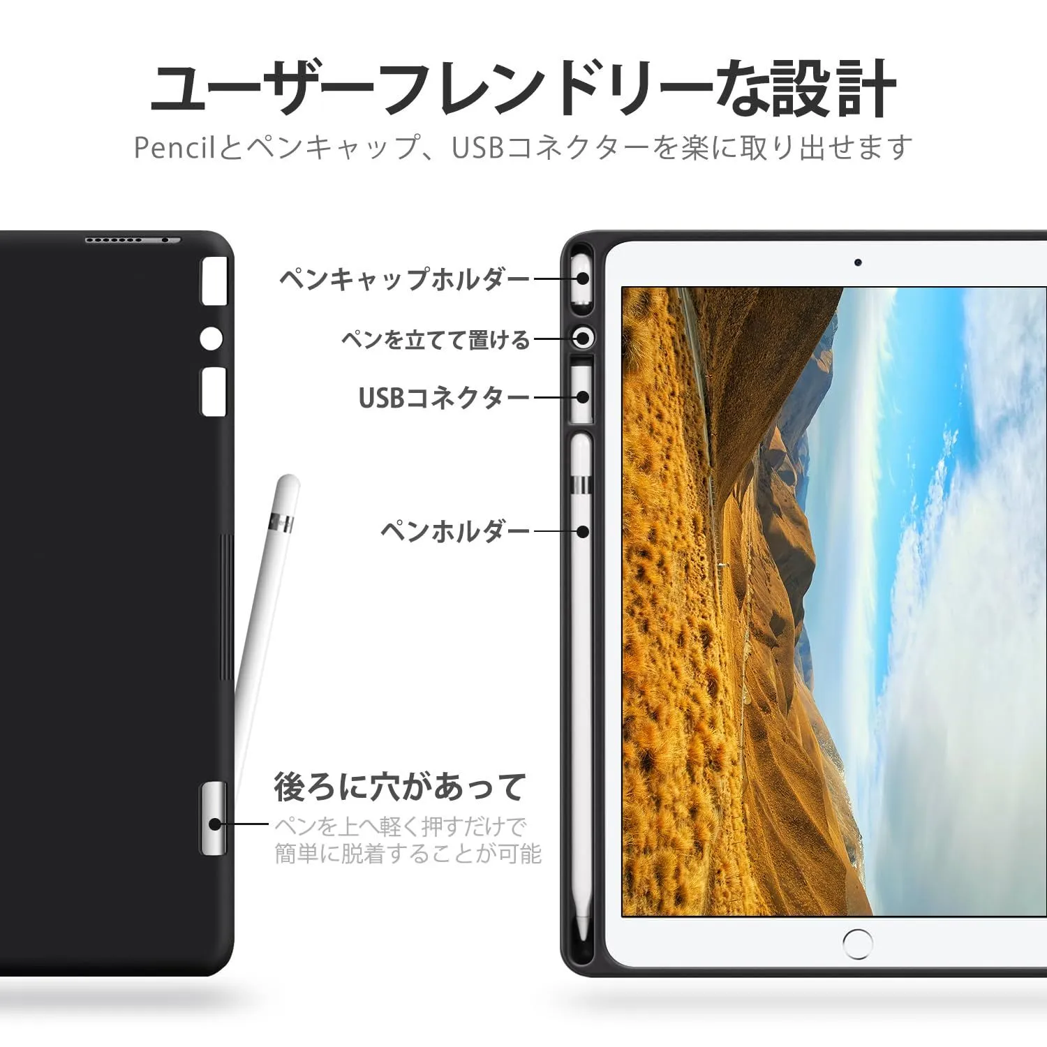 【ペンホルダー内蔵】ペンシル/ペンキャップ/ライトニングアダプタスロットが内蔵されており、これを使えば、ペンをしっかりと保管し紛失を避けることができます。スロットの後ろには3つの開口部があり、ペンやスペアパーツを楽に取り外すことができます。注意:ペンシルは付属していません。 3、