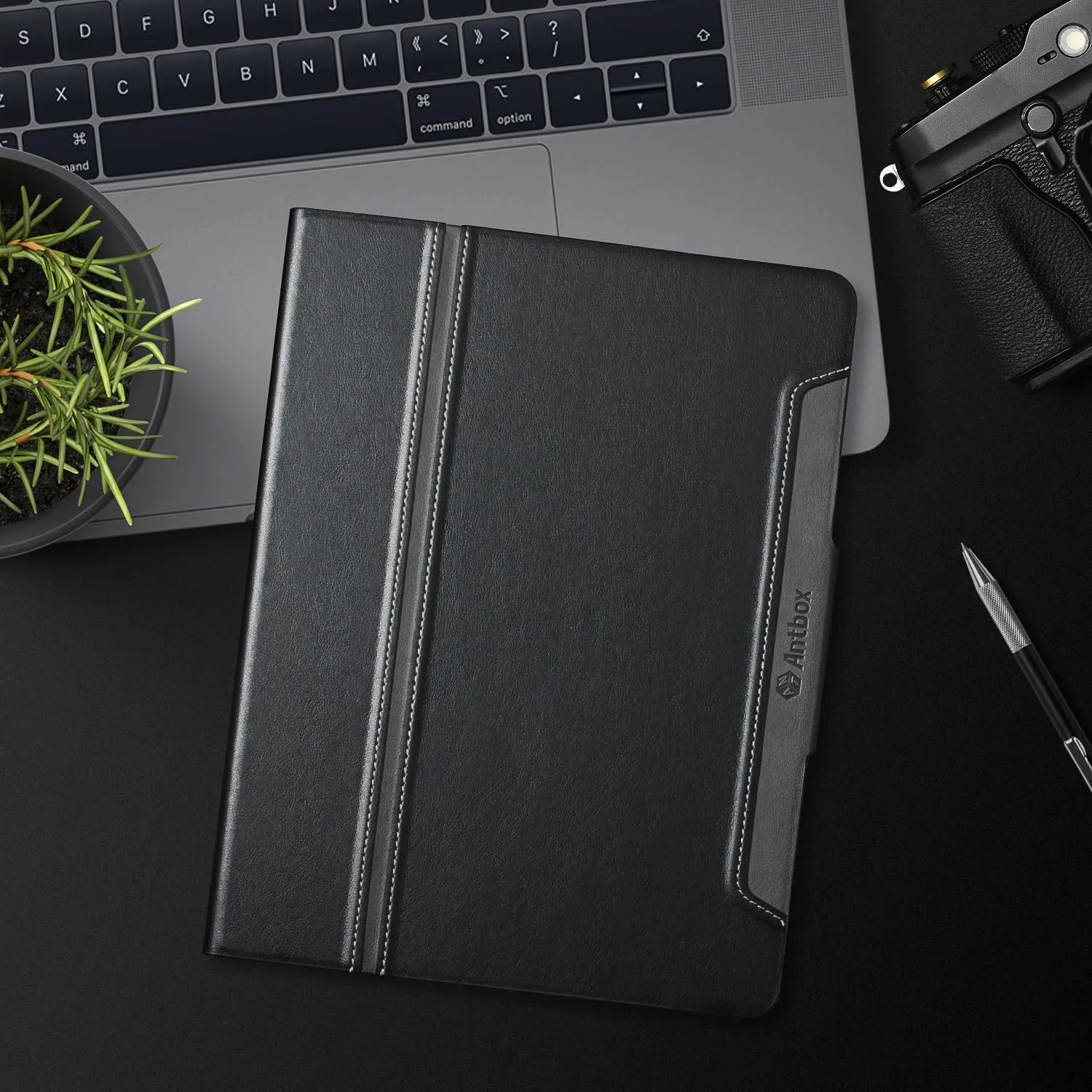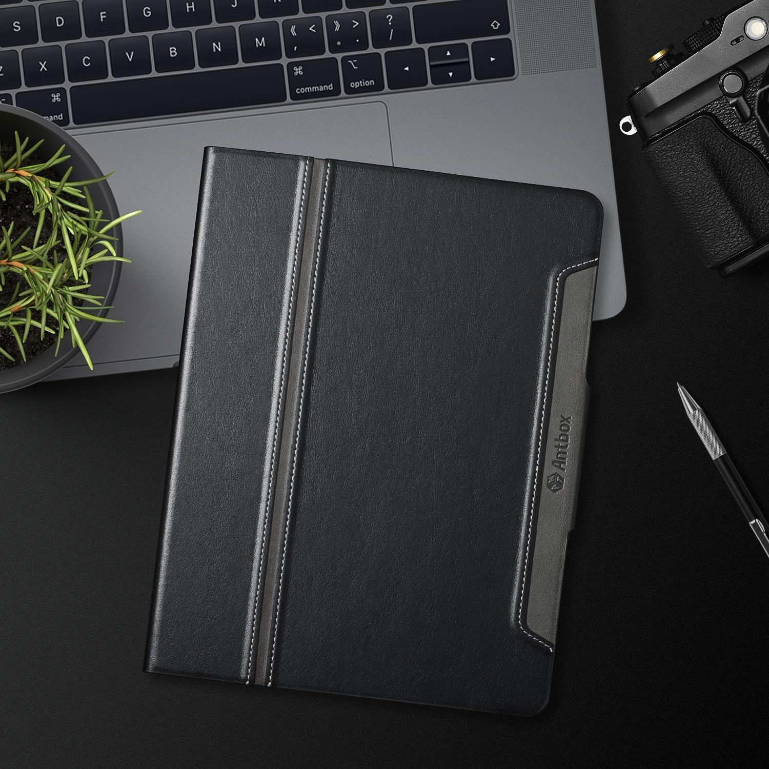 Antbox iPad 9.7 (iPad 第6/5世代) iPad Air2/Air/Pro 9.7 ケース 高級ソフトPUレザー製 Pencil収納 オートスリープ&スタンド機能付き 手帳型 ひび割れ防止 全面保護 9.7インチ 専用ケース (ブラック)