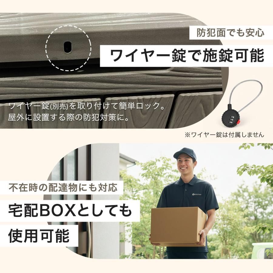 さらにワイヤー錠で施錠できるため、置き配用の宅配ボックスとしても使え、防犯面でも安心です。